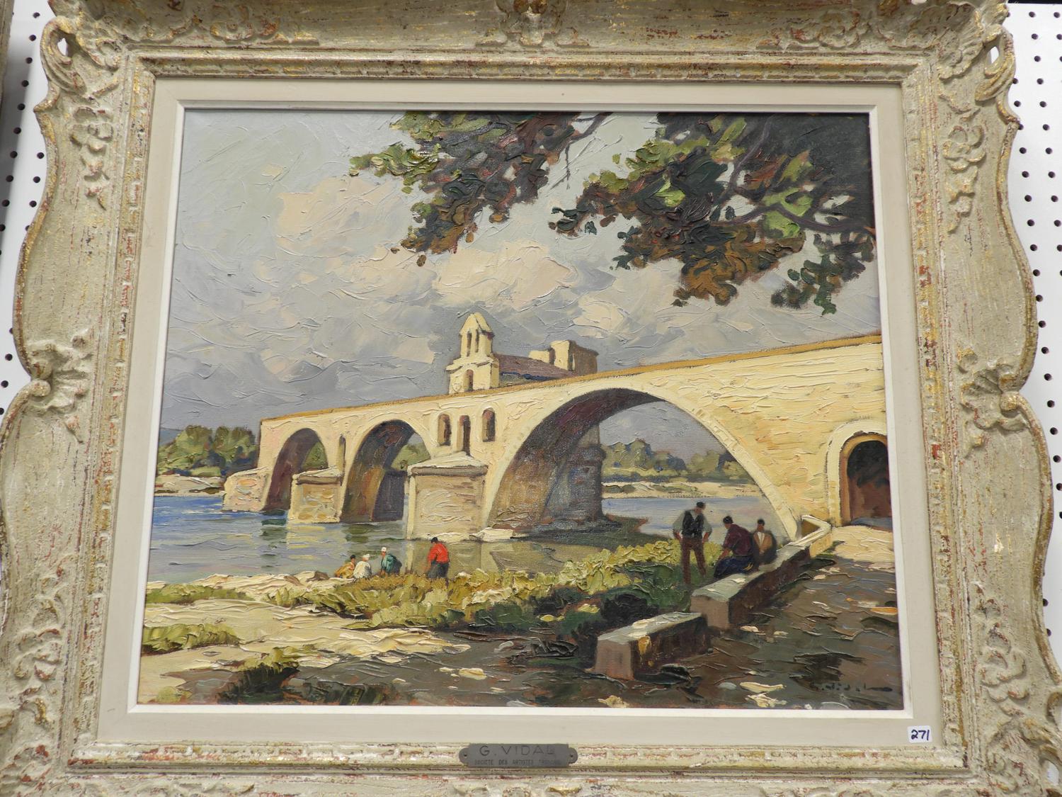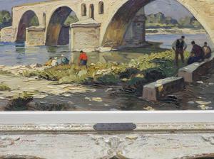 gustave vidal, oil on canvas, 21" x 25", "bridge of avignon".