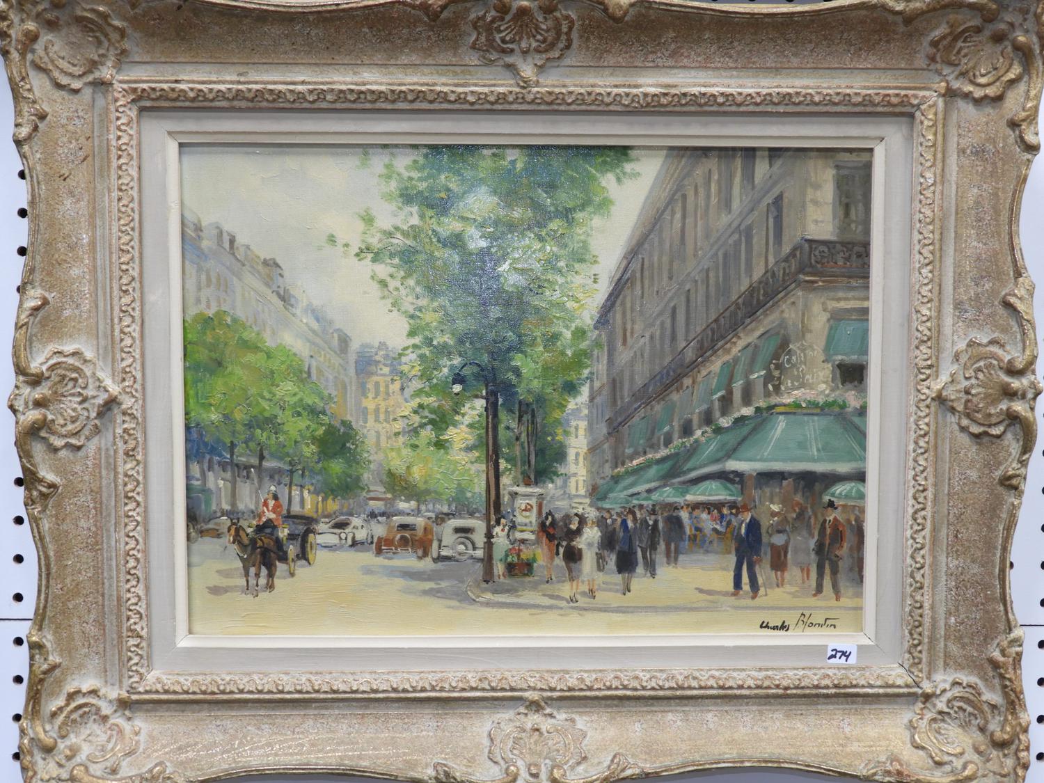 charles blondin, oil on canvas, 12" x 17", "paris street scene".