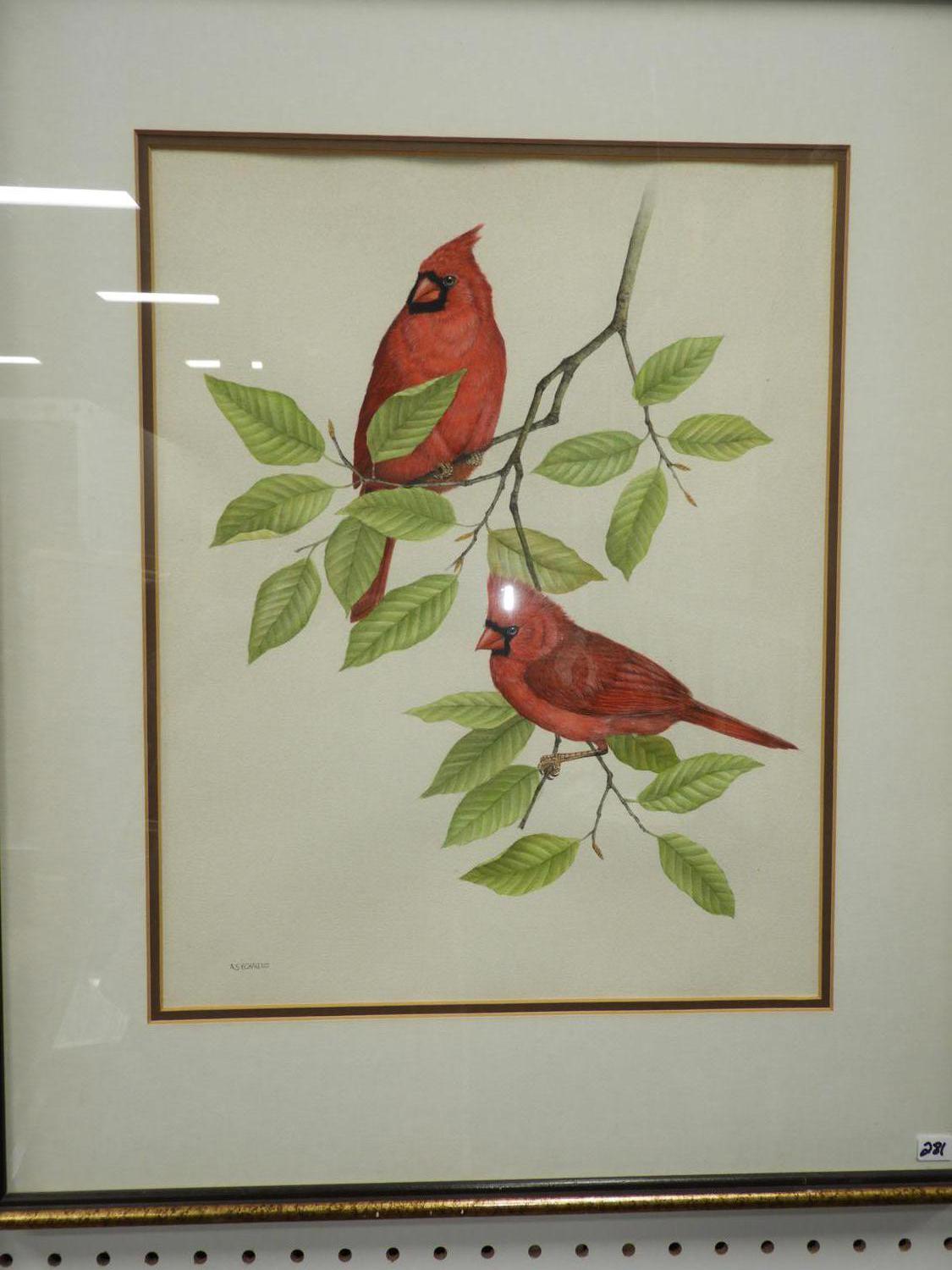alfred s. y. chau, watercolour, 17" x 14", "cardinals".