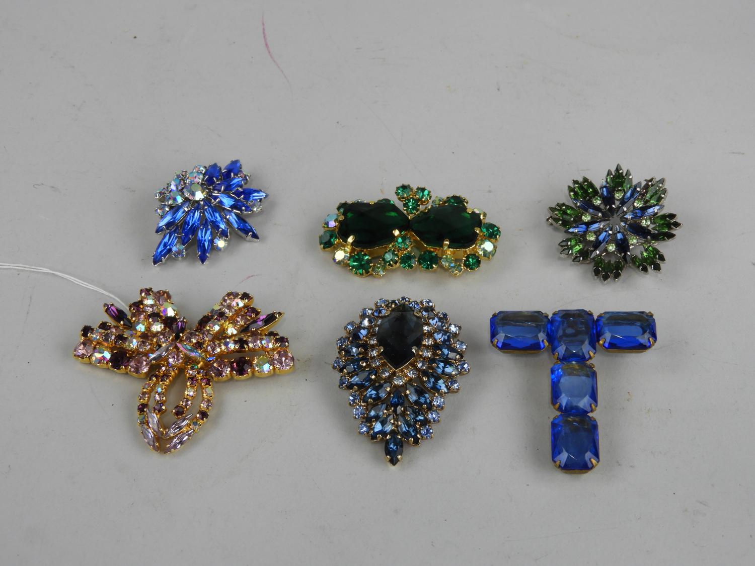 6 1950's austrian crystal brooches
