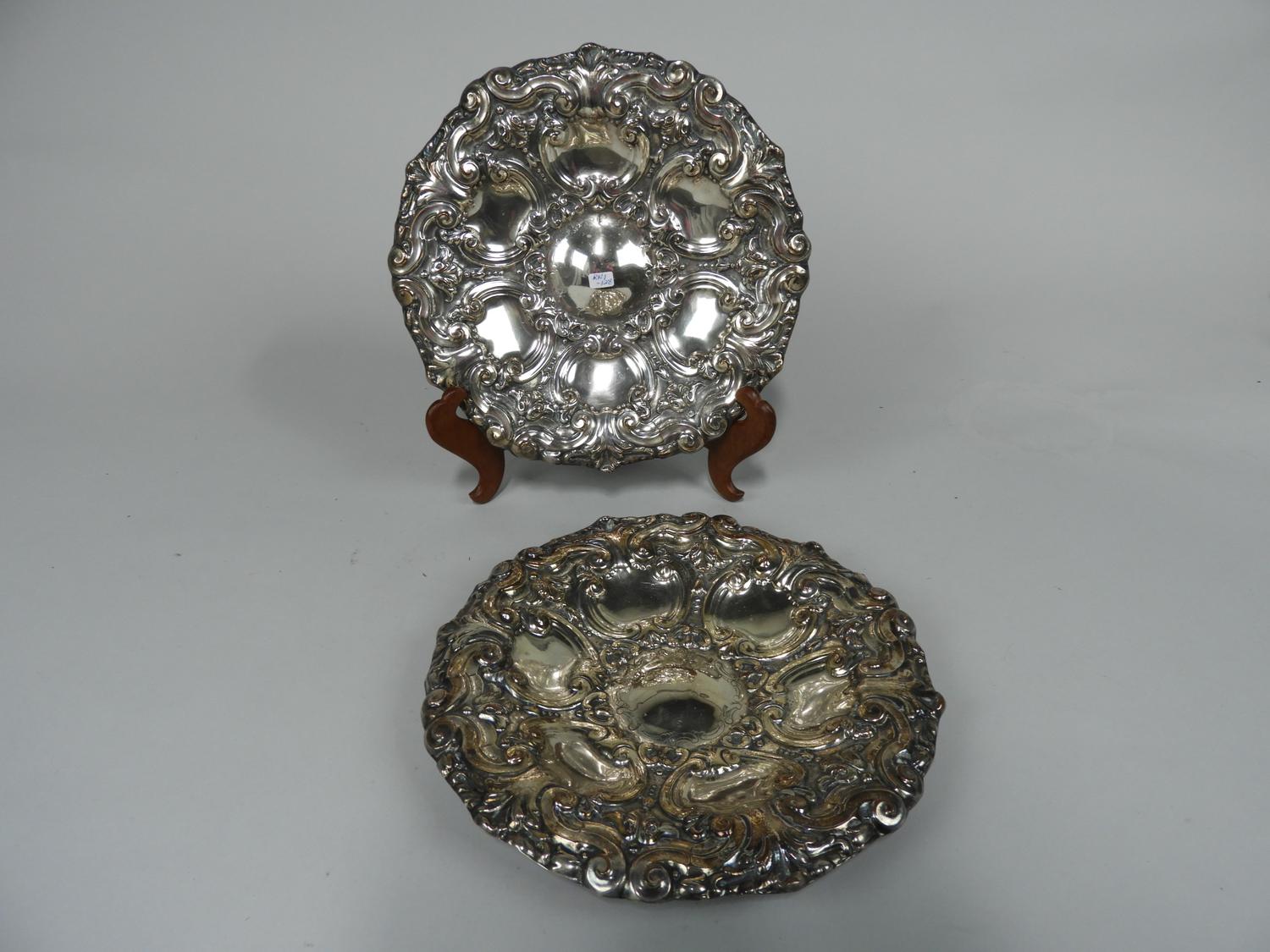 pair of 19th century silver plate rococo-style wall plates