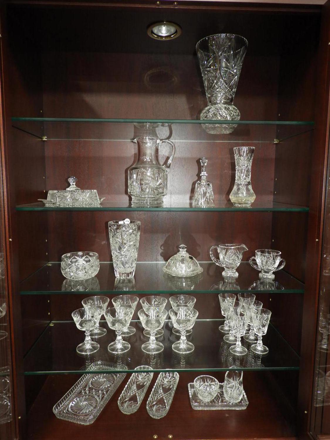 lot of misc glass and crystal stemware, serving pieces and vases