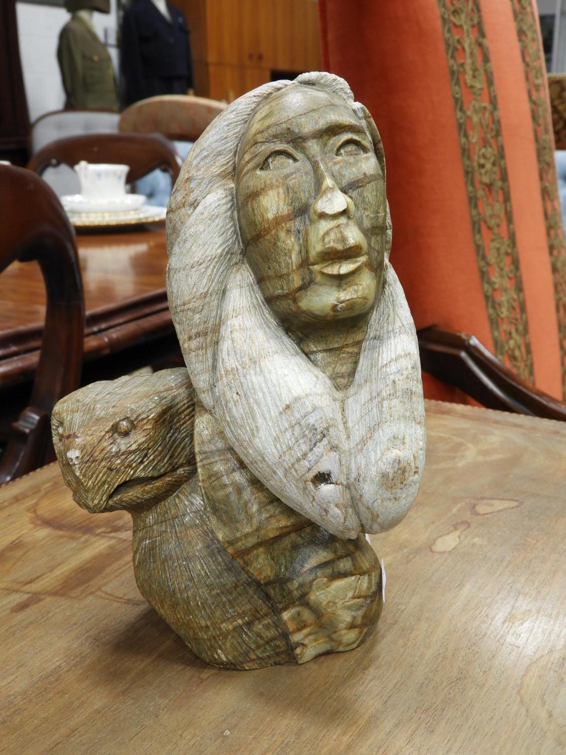 loreene henry carved stone figure of a shamen, d. 1995