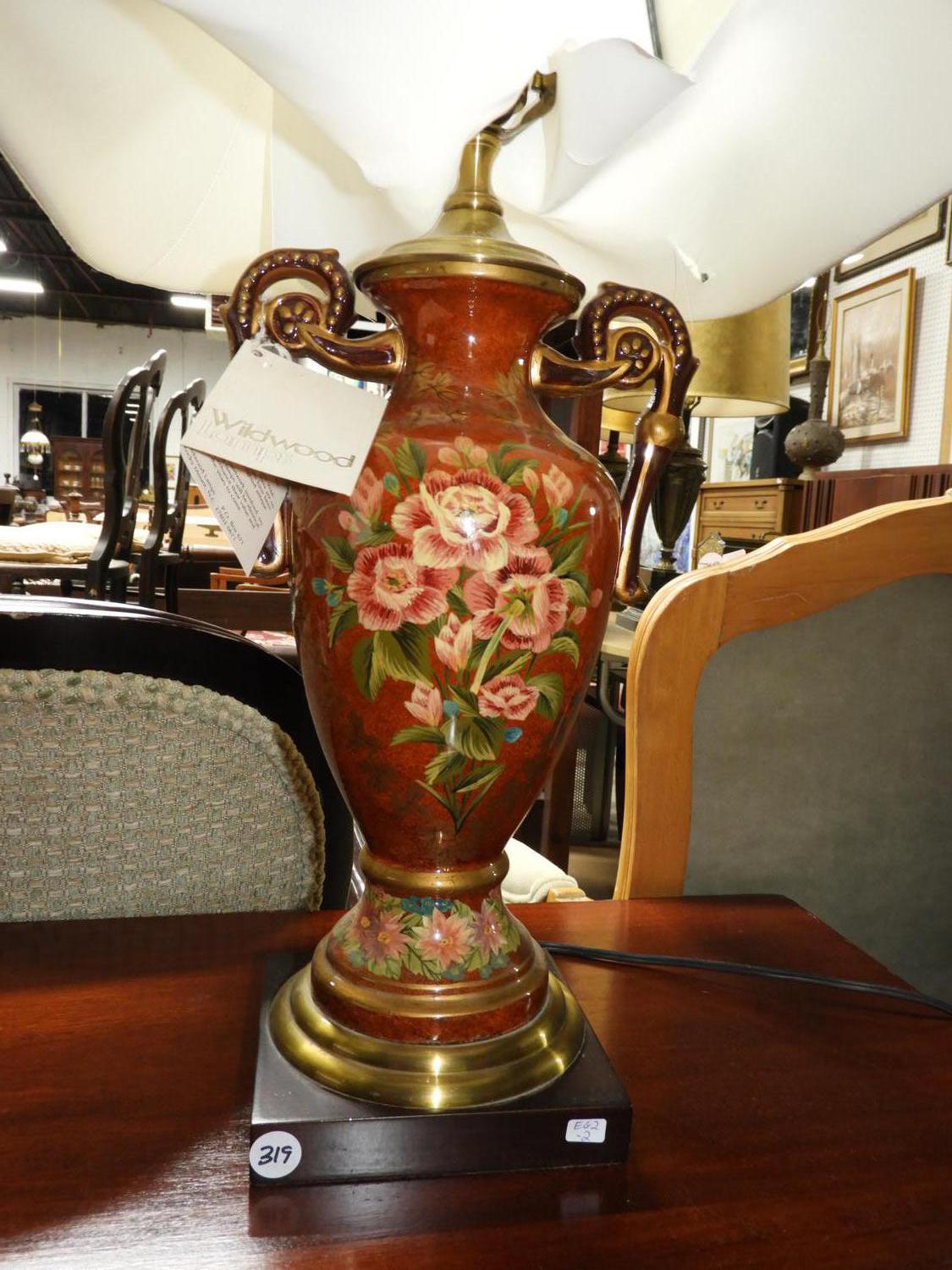wildwood ceramic table lamp with hand painted decoration, with another lamp.