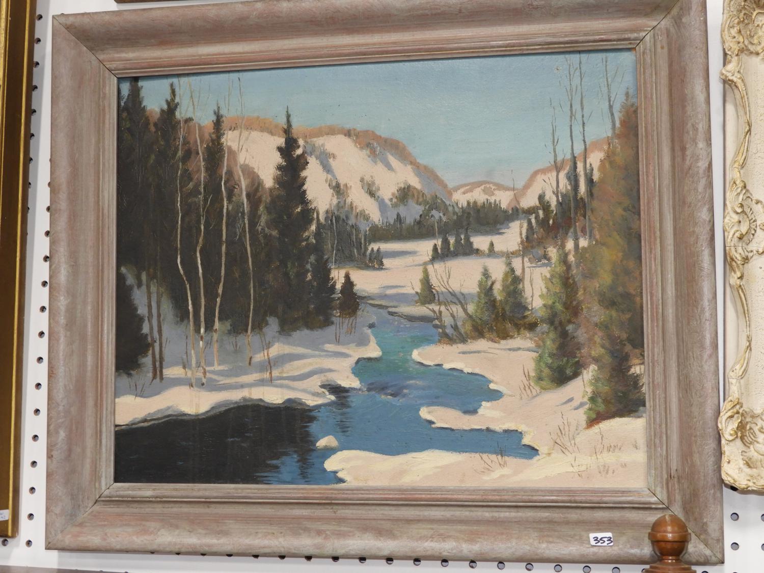 after tom stone, oil on board, 16" x 20", "winter landscape".