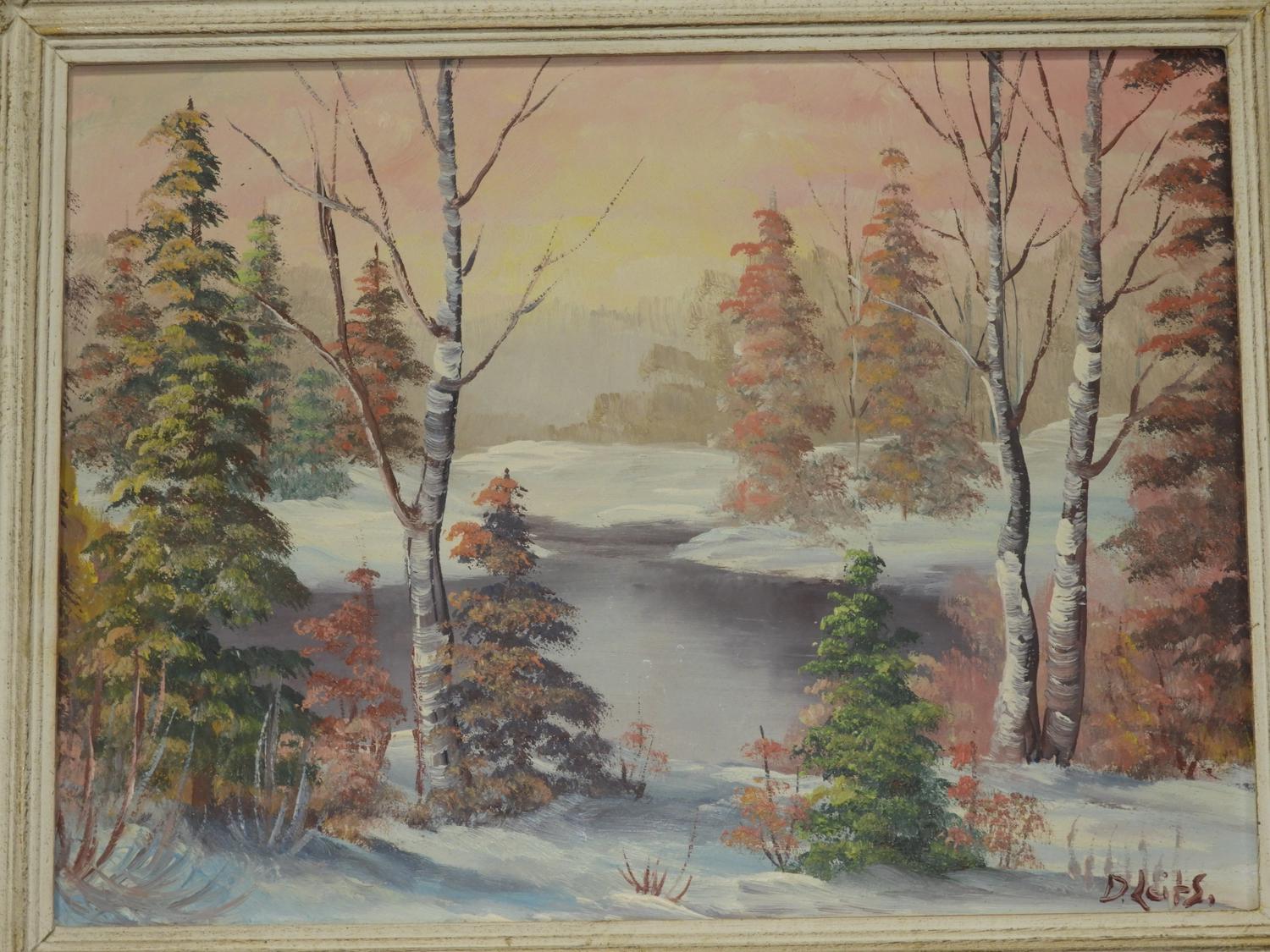 d. leits, oil on board, 12" x 16", "winter landscape".