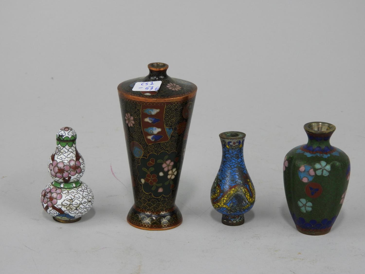 four cloisonne enamel vases, ht. 3 3/4" and smaller