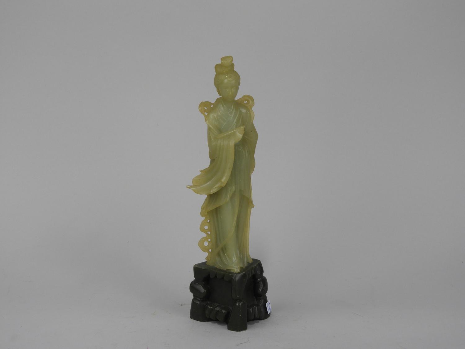 chinese carved resin -jadelike figure of a woman on stand, ht. 9 1/2"