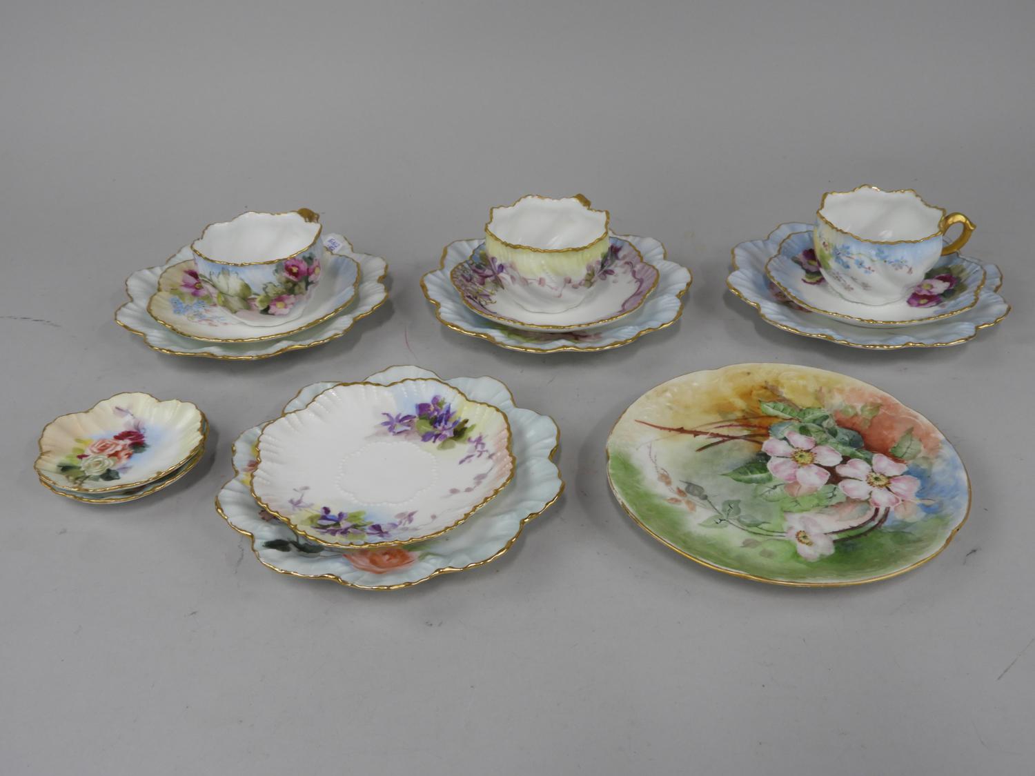 lot of limoges handpainted gilded cups and saucers