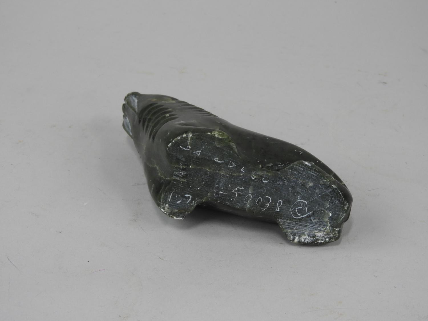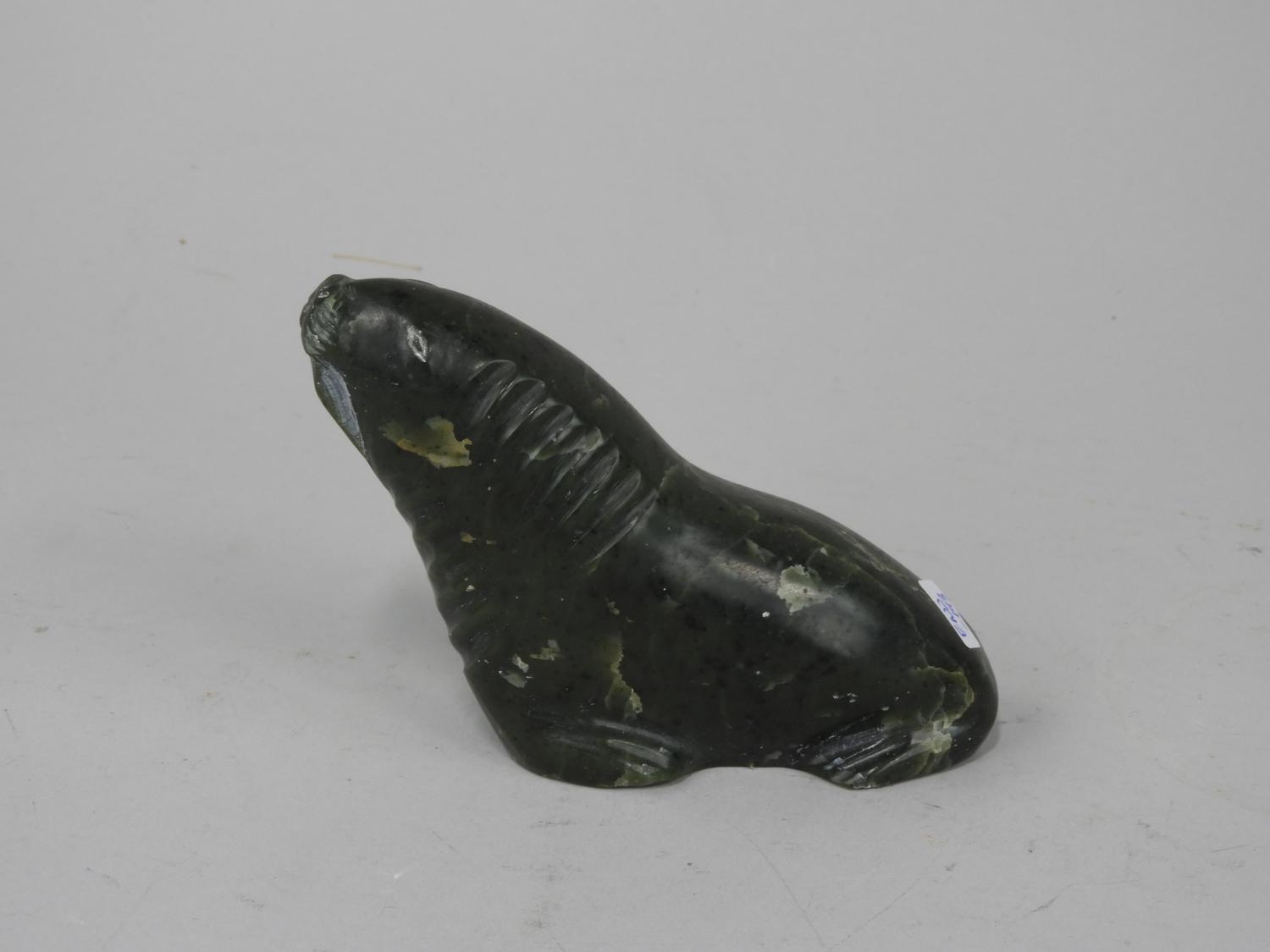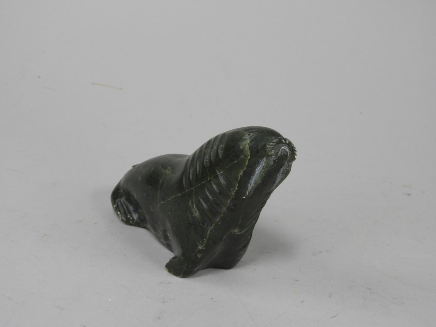 inuit green stone carving of a walrus, 3 3/4" x 5"
