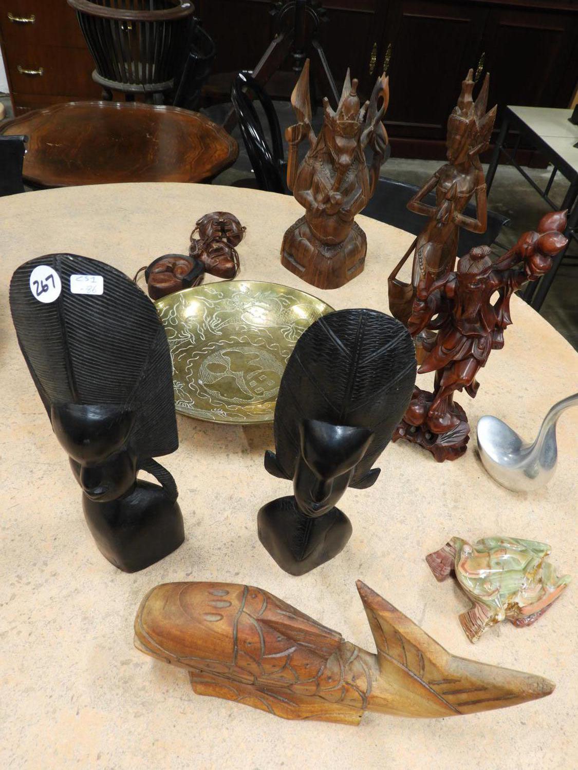 lot of carvings, brass, stone, etc.
