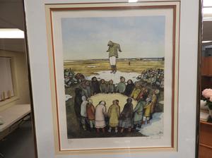 william kurelek, litho in color, 15 1/2" x 12 1/2", "sky tossing"
