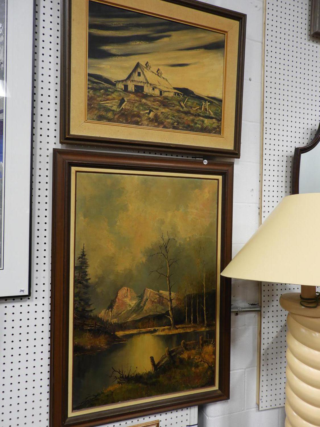 alfred cyril patstone, two oil paintings, "landscape" & "farm scene".