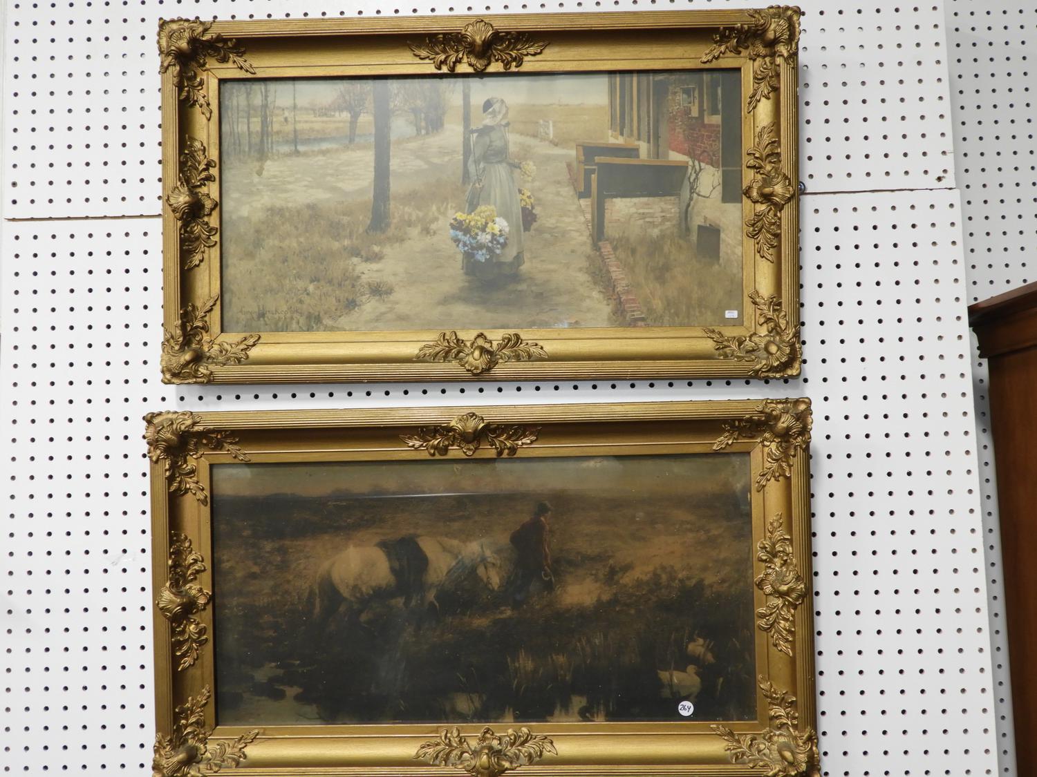pair of gilt frame prints with a gilt framed pastel.