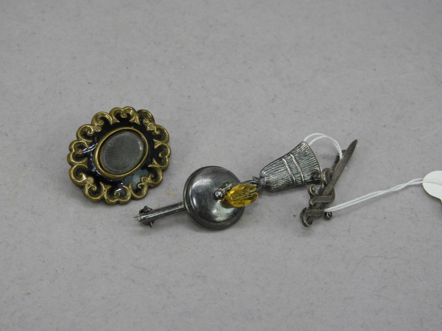 birks sterling silver sword pin, scottish sterling broom brooch, victorian gf hair plating pin