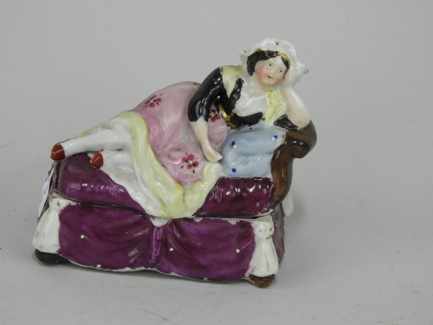 china lady reclining dresser box, 3" x 3 1/2"