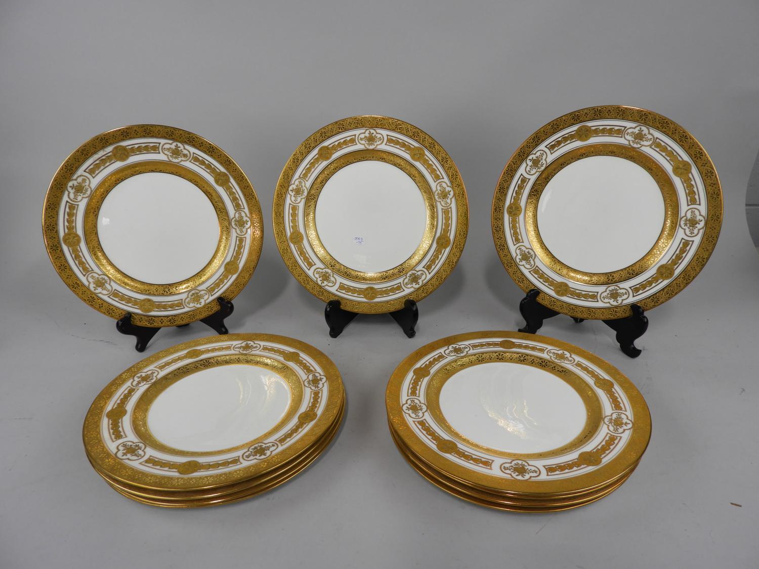 set of gilt decorated crescent and sons china plates, diam. 10 1/2"
