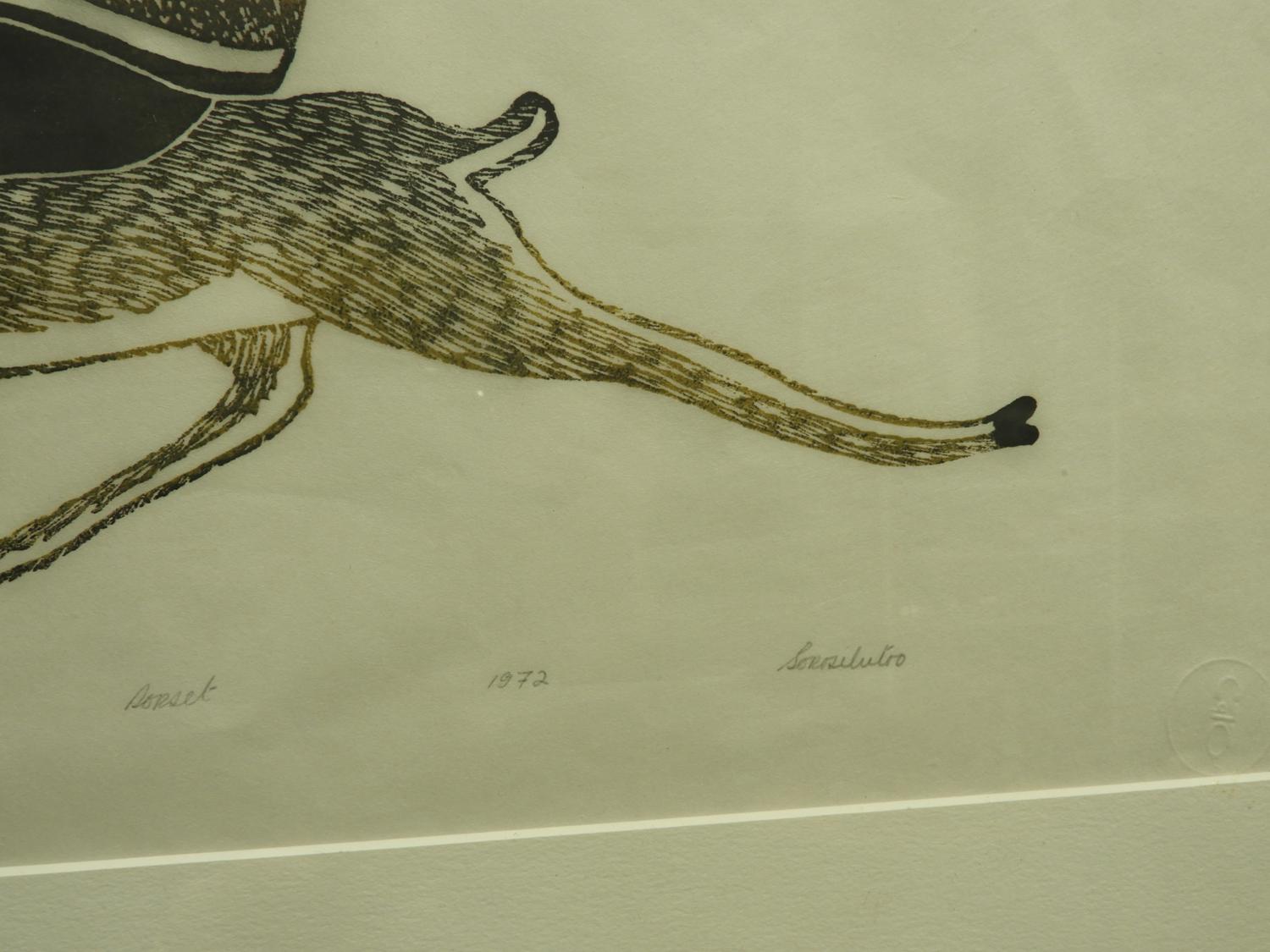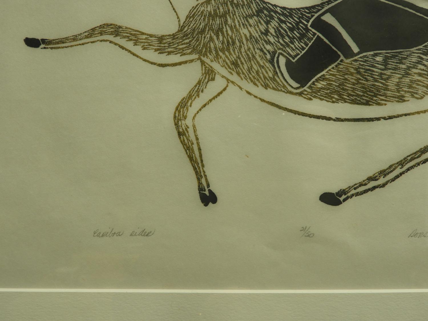 sorosilutoo, stonecut, 15" x 22", "caribou rider".
