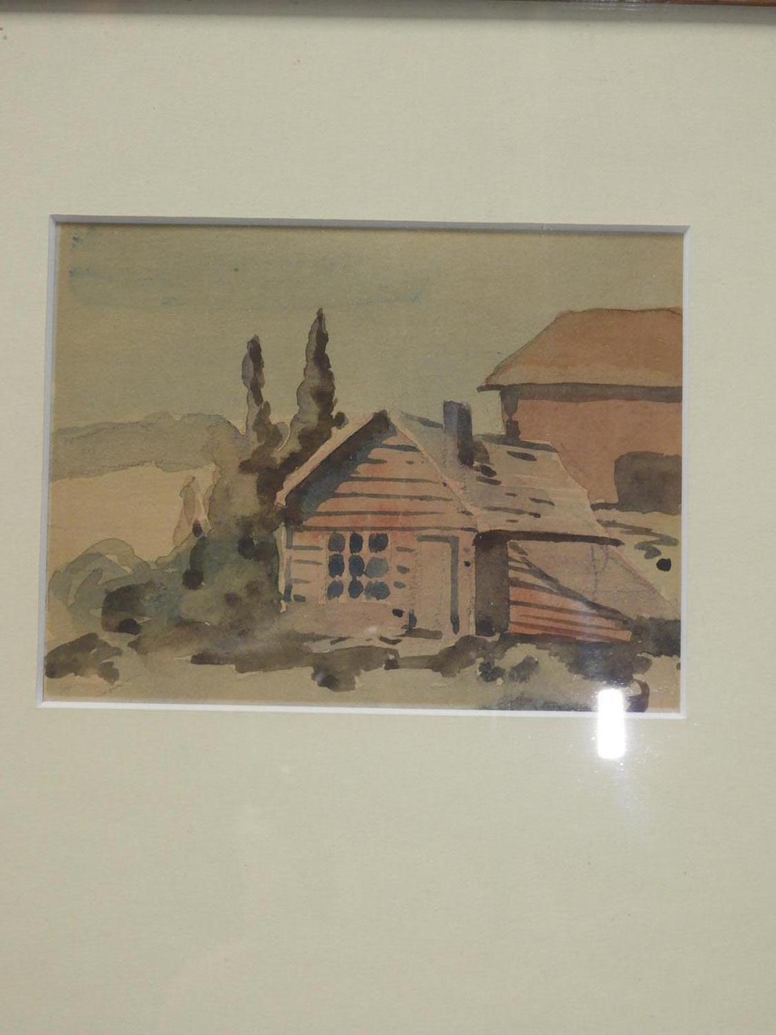 canadian school watercolour, 3 1/2" x 4 1/2", "farm house".