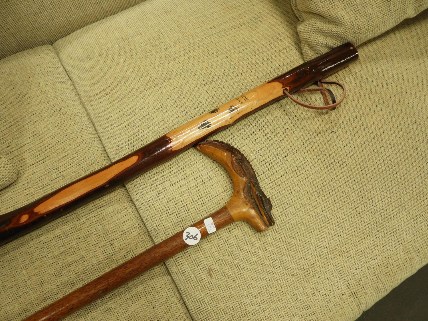 carved cane and walking stick.