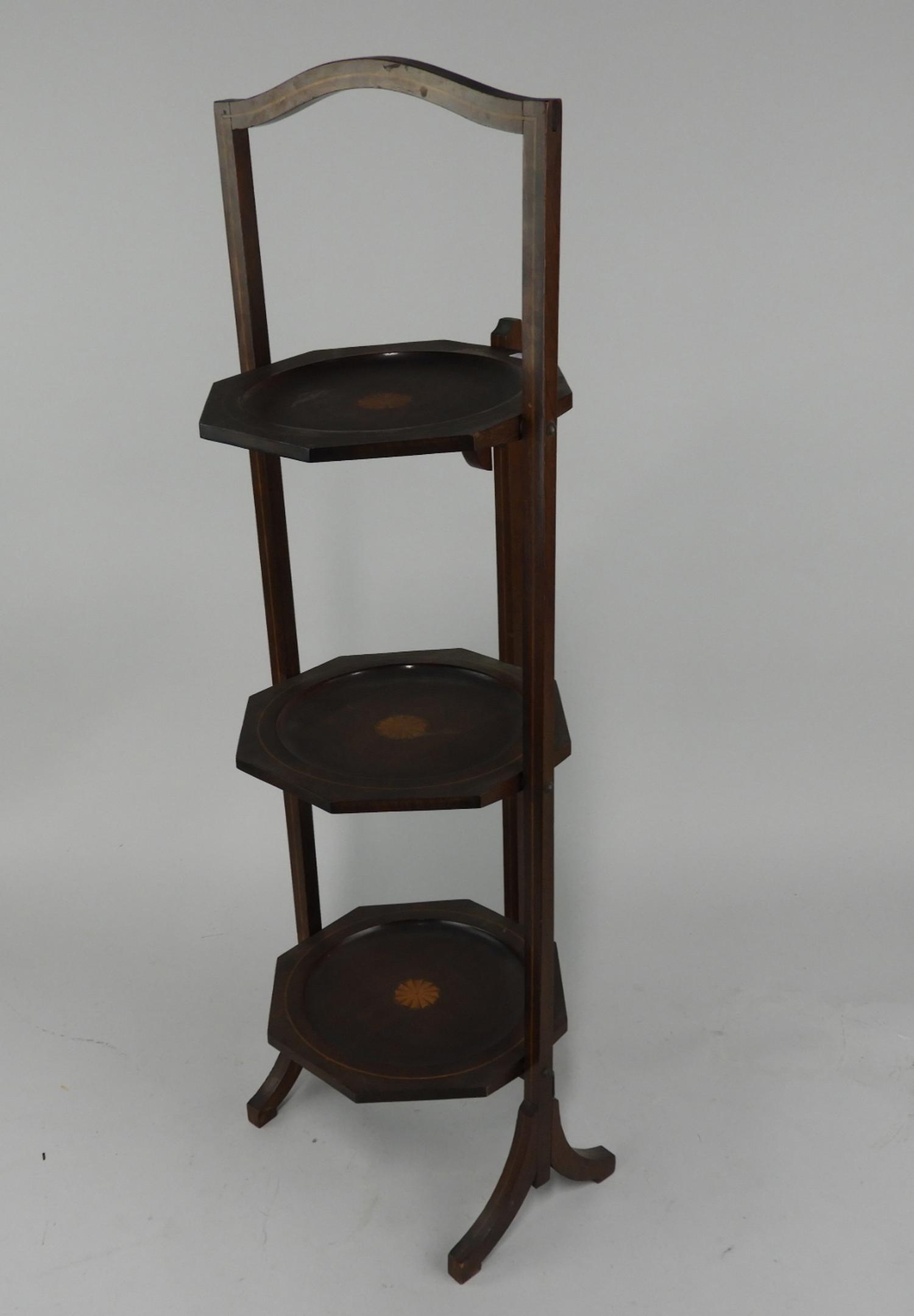 19th century inlaid mahogany folding plate stand