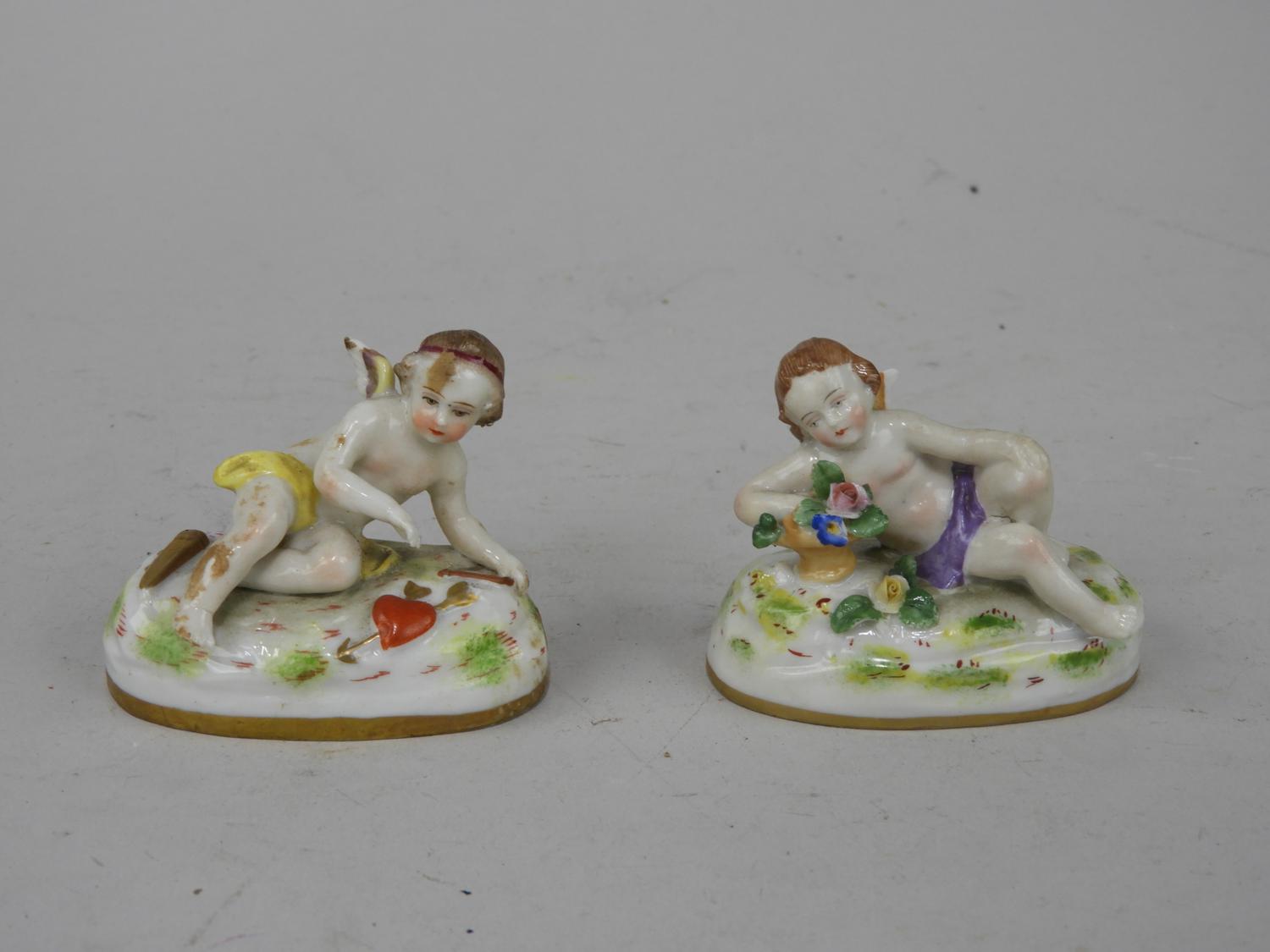 pair of derby chelsea figurines of reclining cherubs, 3"
