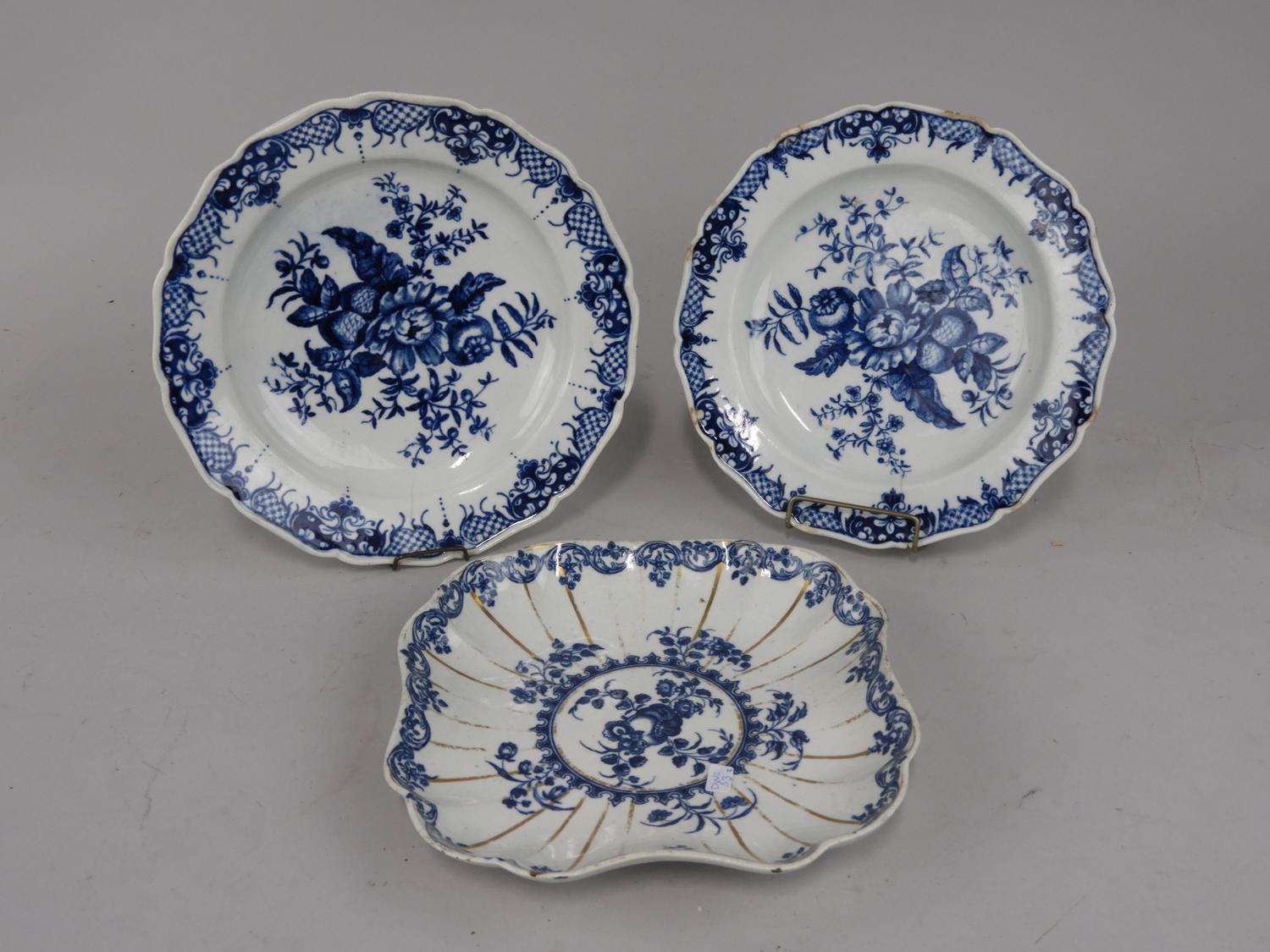 3 19th century blue and white transfer print dishes