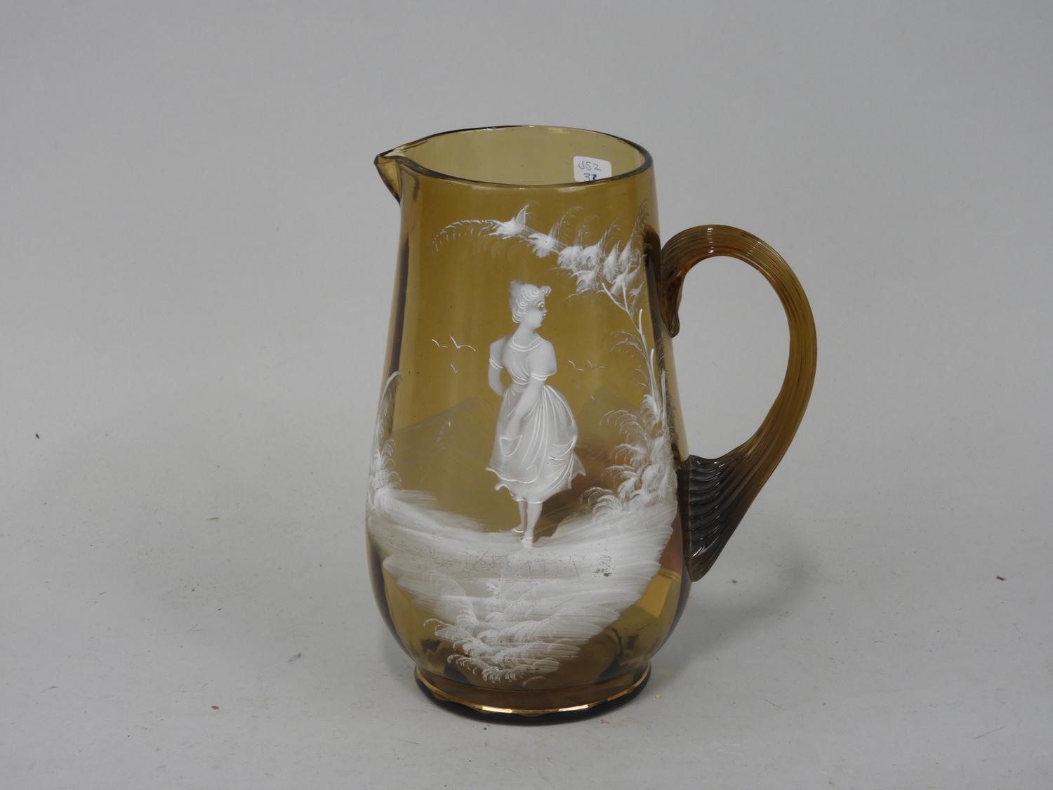 mary gregory style painted champagne glass pitcher, ht. 8"
