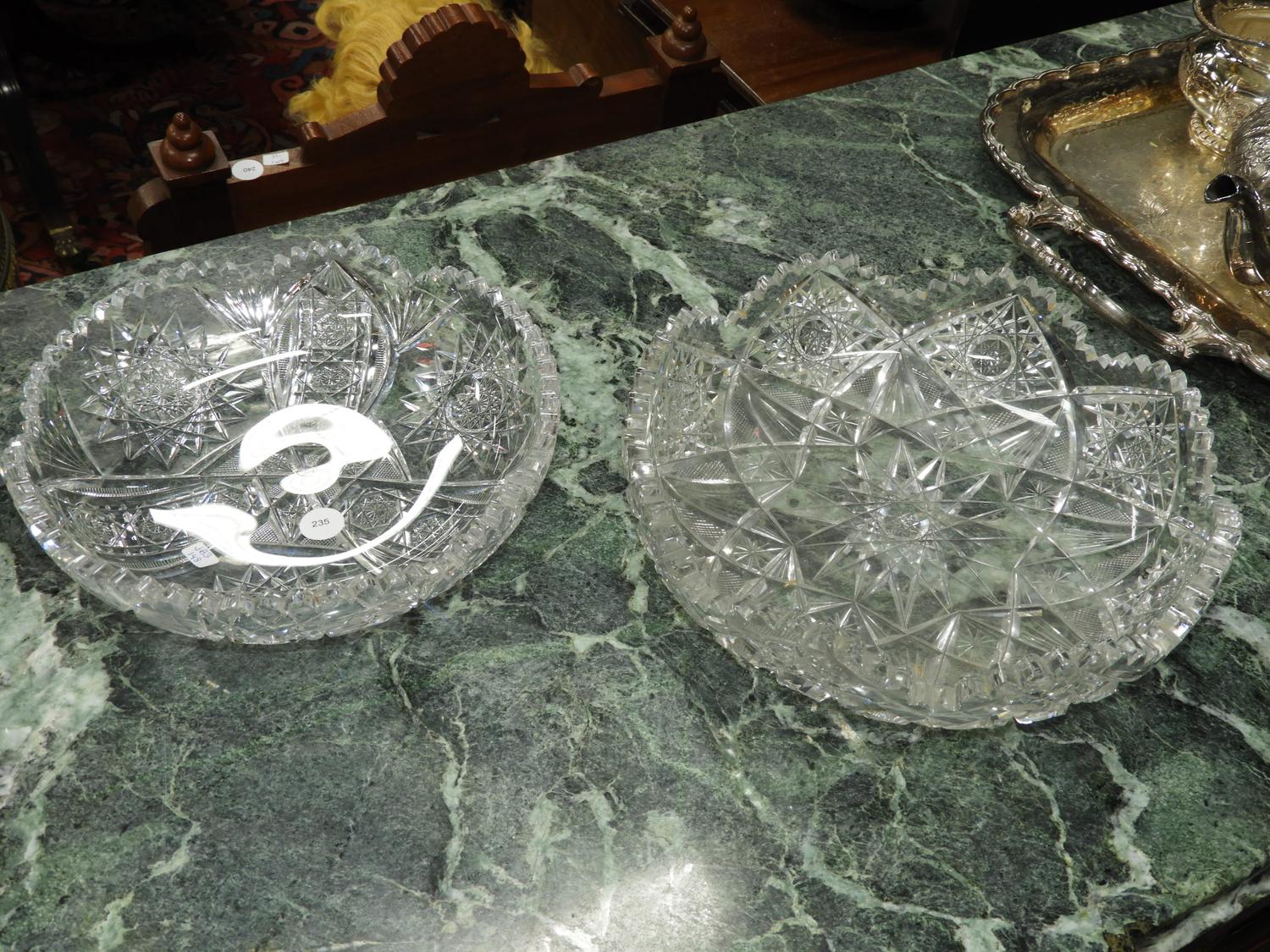 two cut crystal serving dishes.
