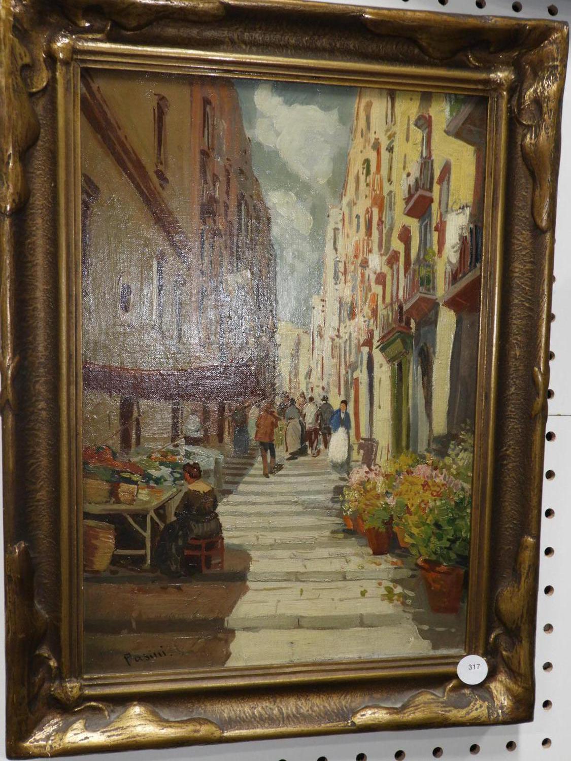 lazzaro pasini, oil on board, 14" x 9 1/2", "italian street scene".