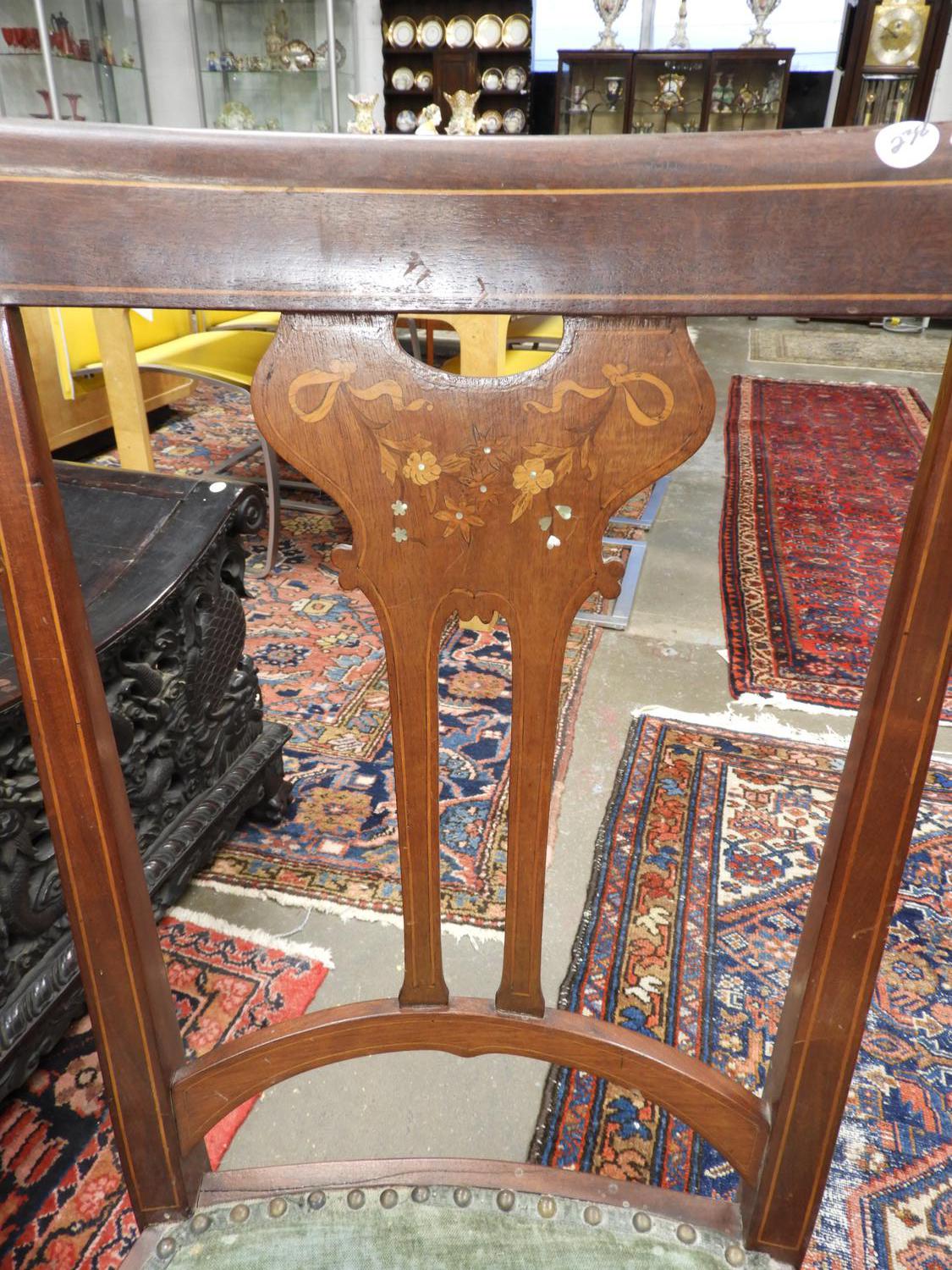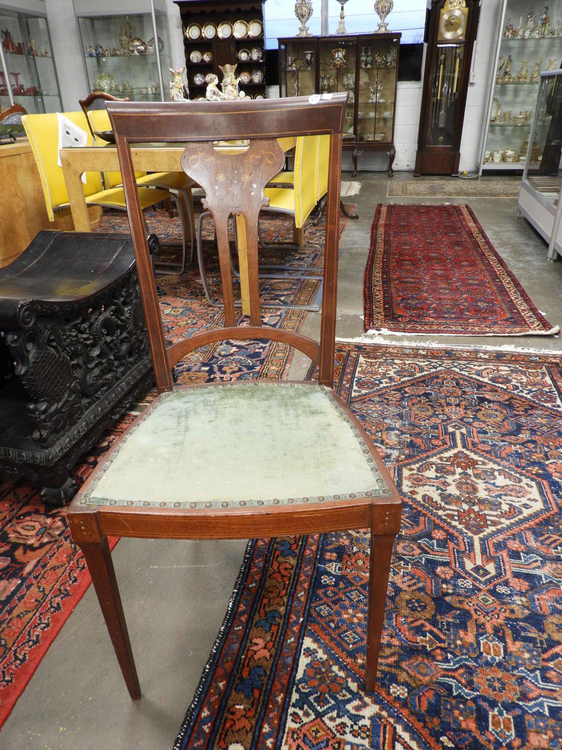 art nouveau inlaid mahogany side chair.