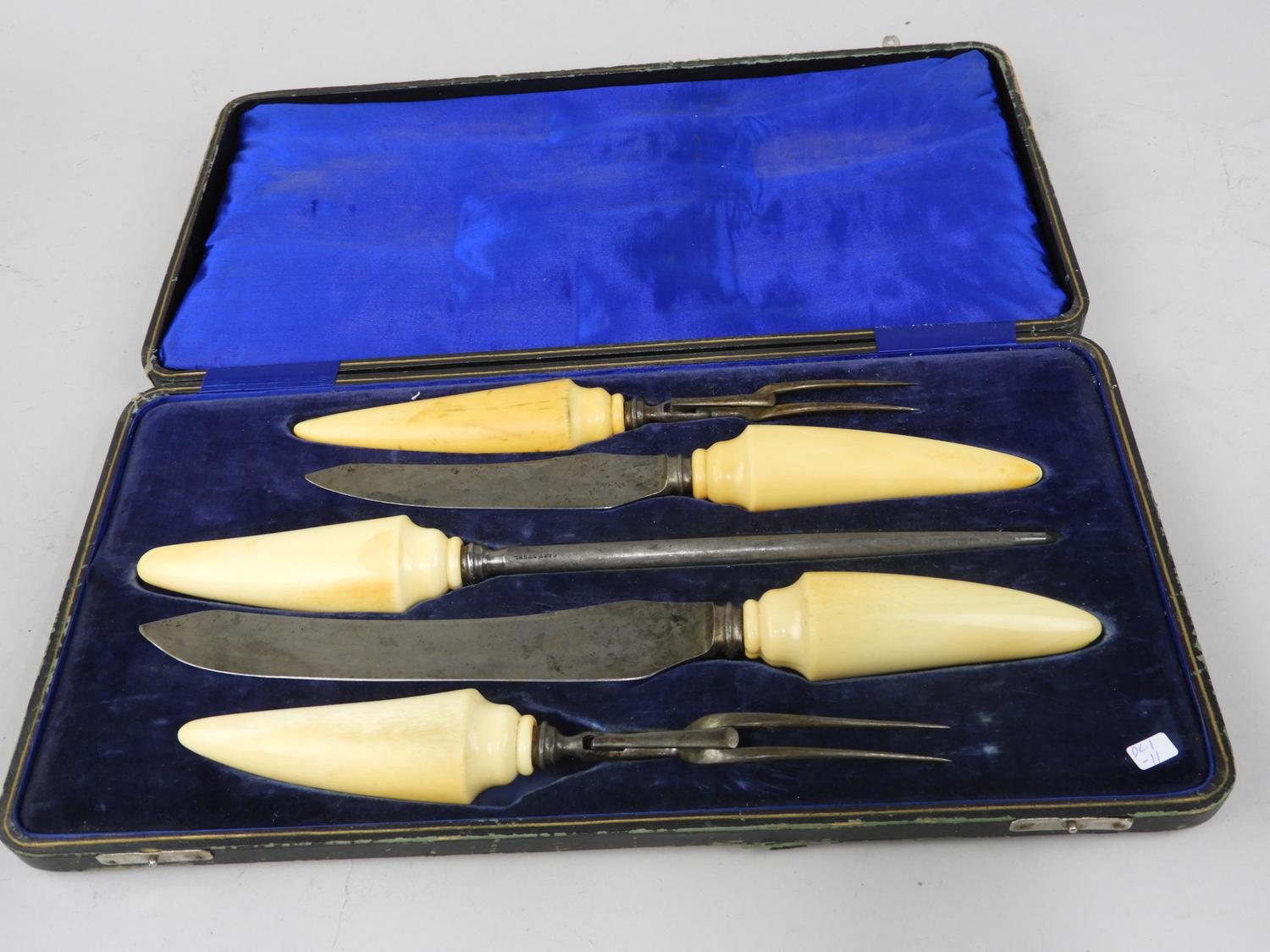 r. f. mosley ltd. sheffield 5pc ivory handled carving set, late 19th century