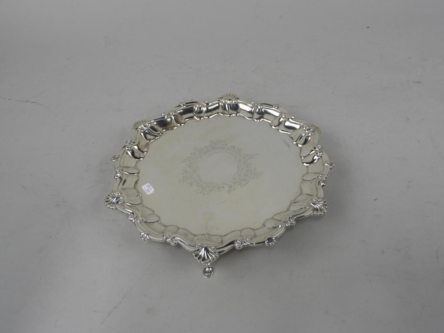 hallmarked sterling silver footed salver, sheffield c. 1905, dia 10 3/4"