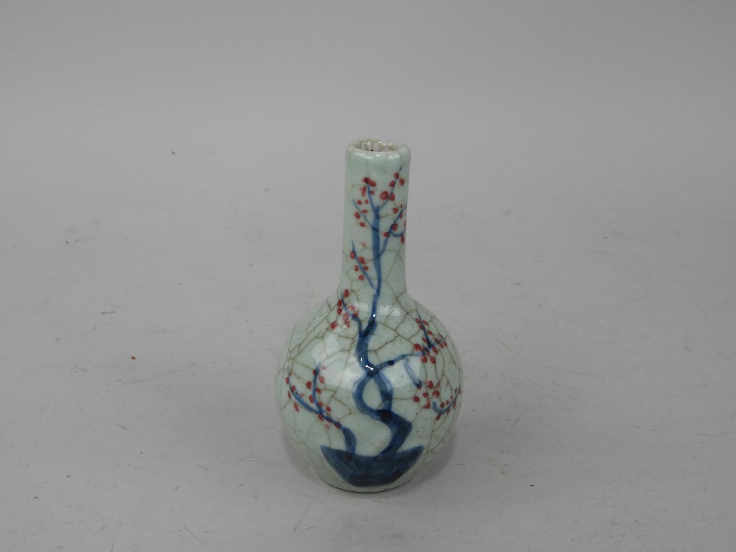 chinese 19th century crackle glazed floral decorated vase, ht. 5"