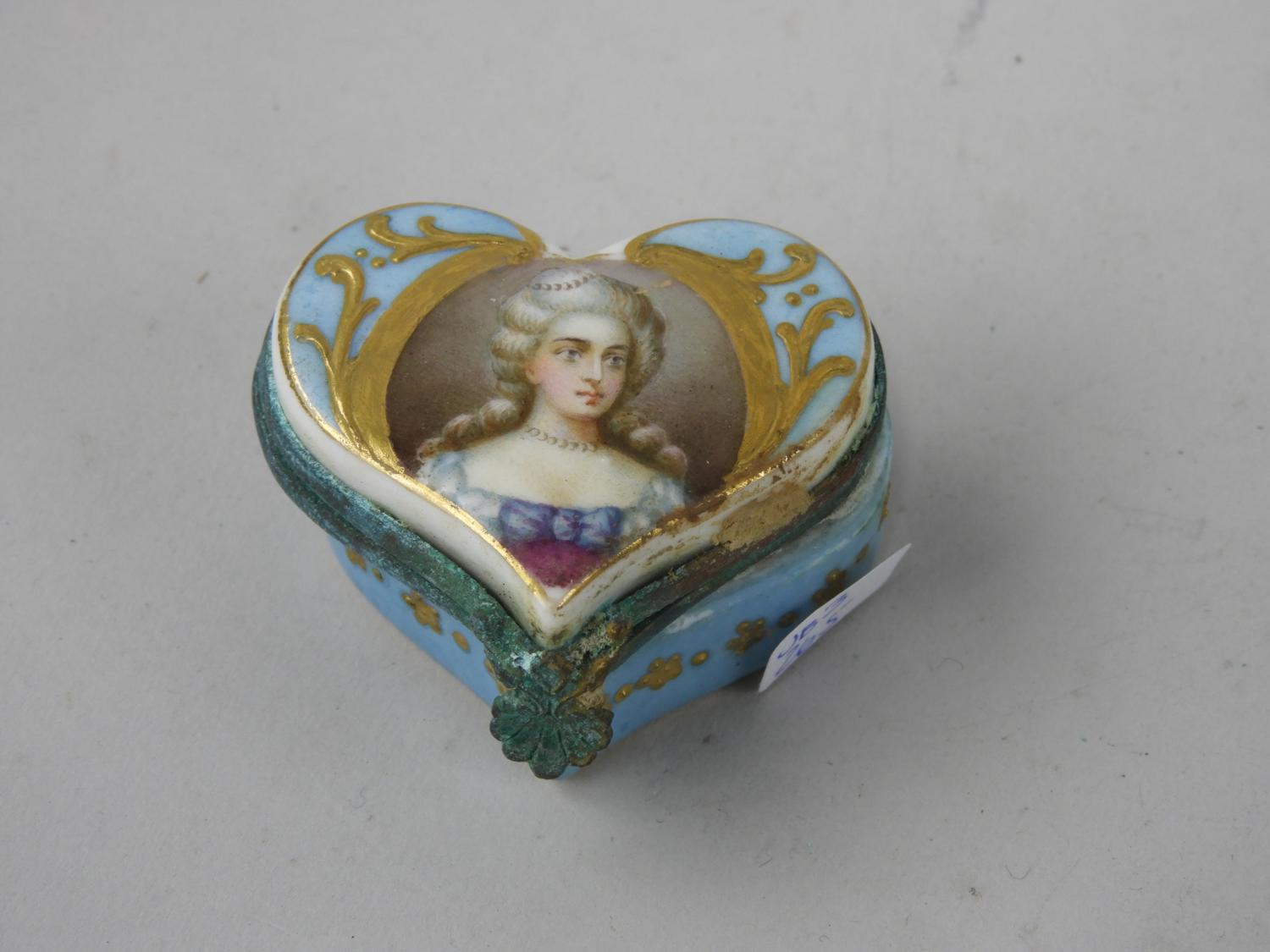 sevres gilded and painted heart shaped dresser box, 2"