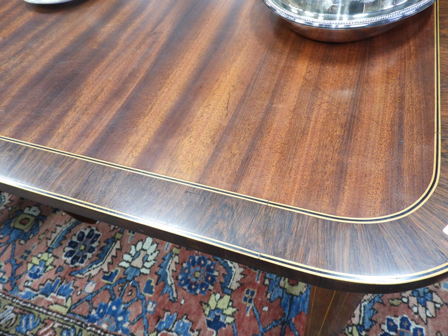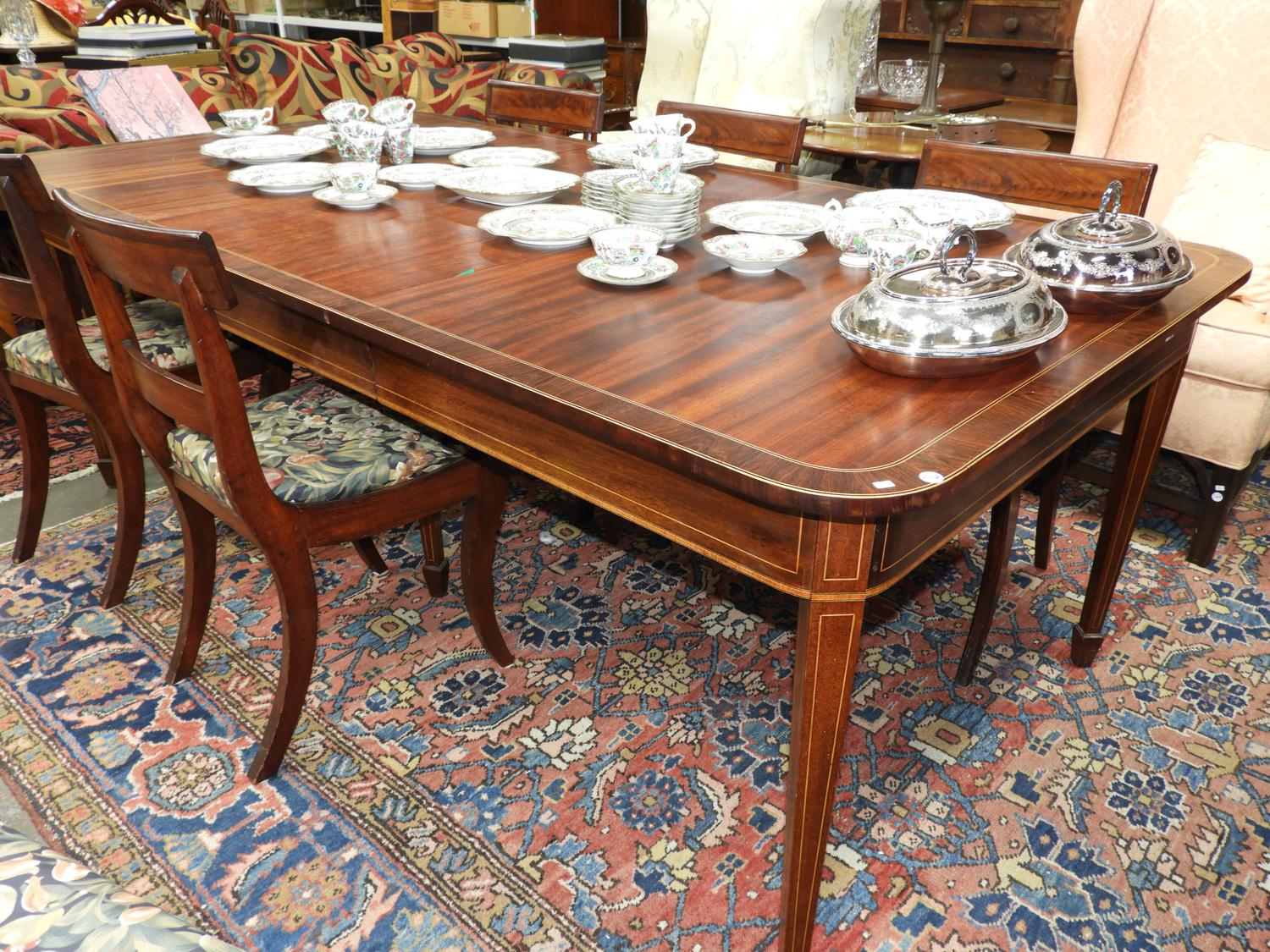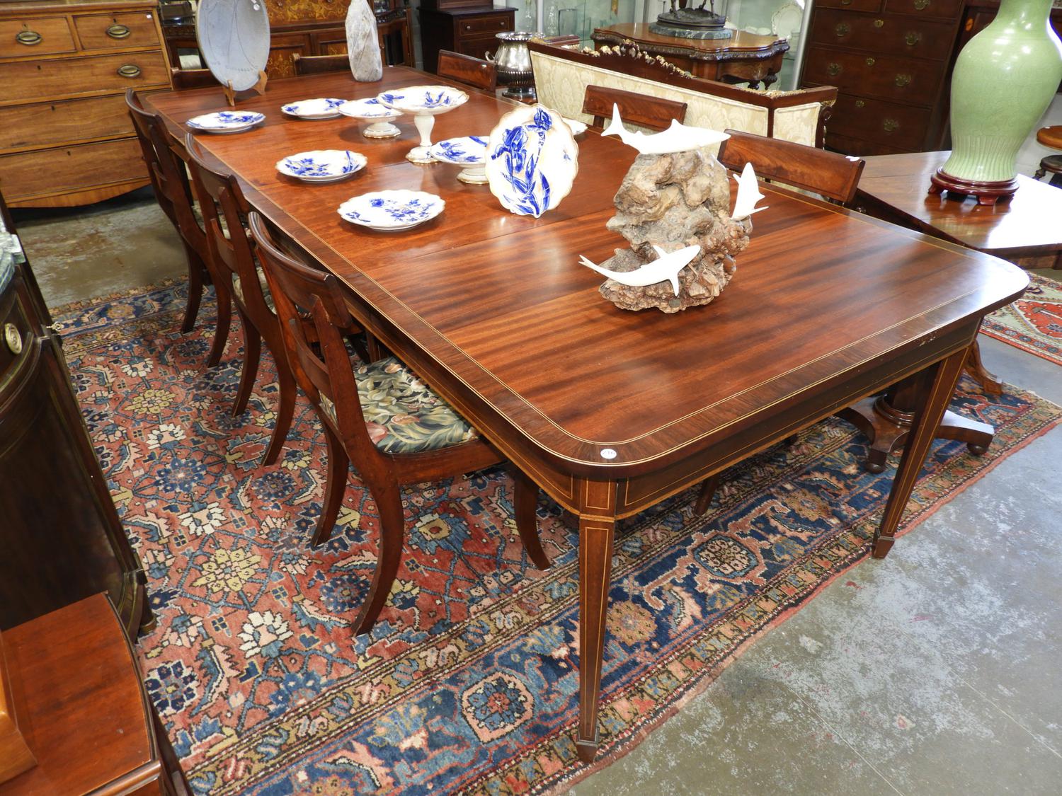 19th century inlaid mahogany dining table with extension leaves