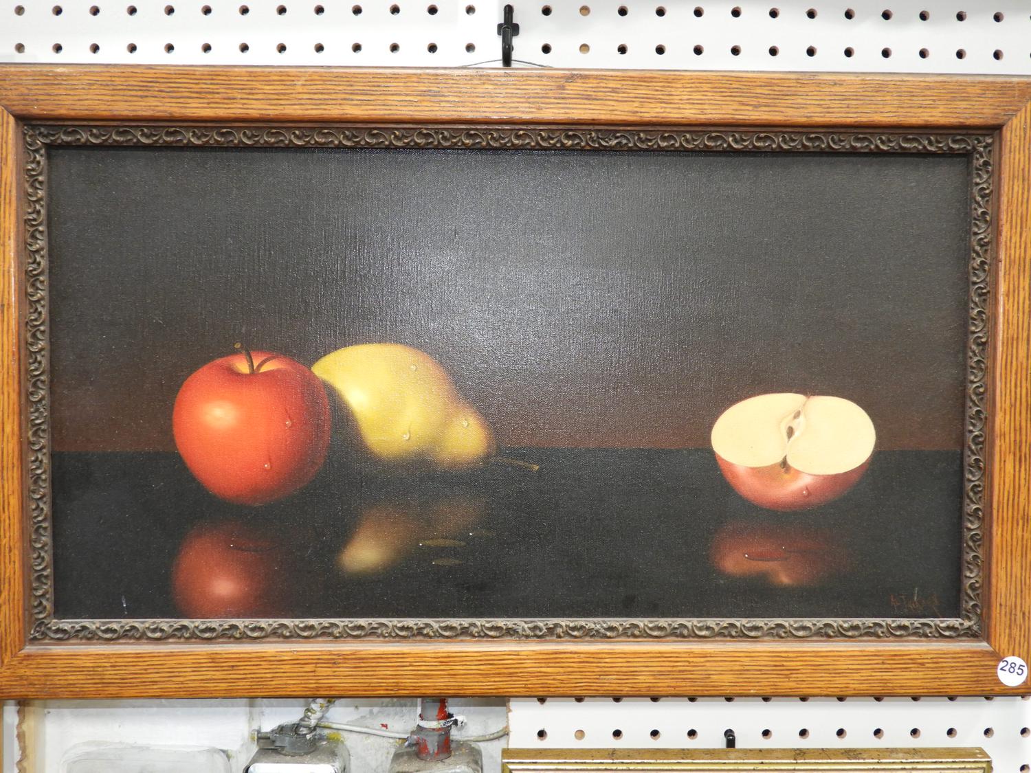 al jackson, oil on canvas, 12" x 24", "stillife of fruit".
