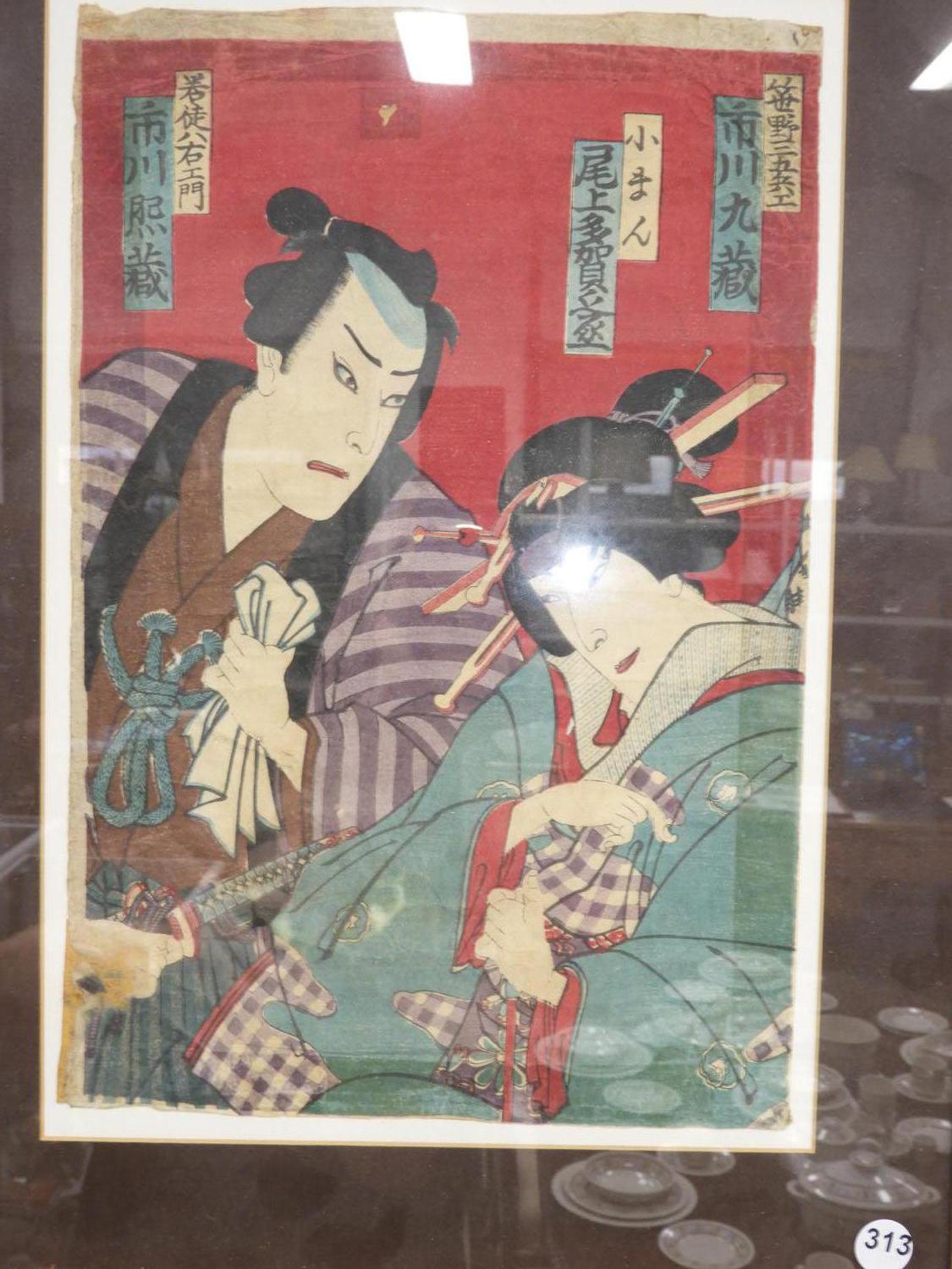19th century japanese woodblock print "kabuki actors".