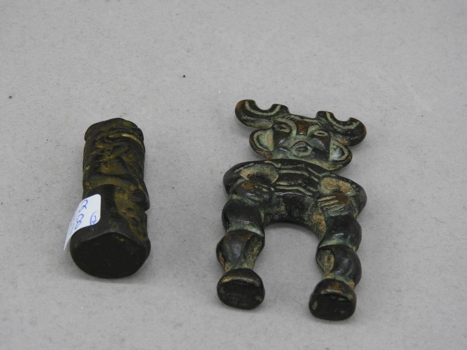two chinese bronze talismans