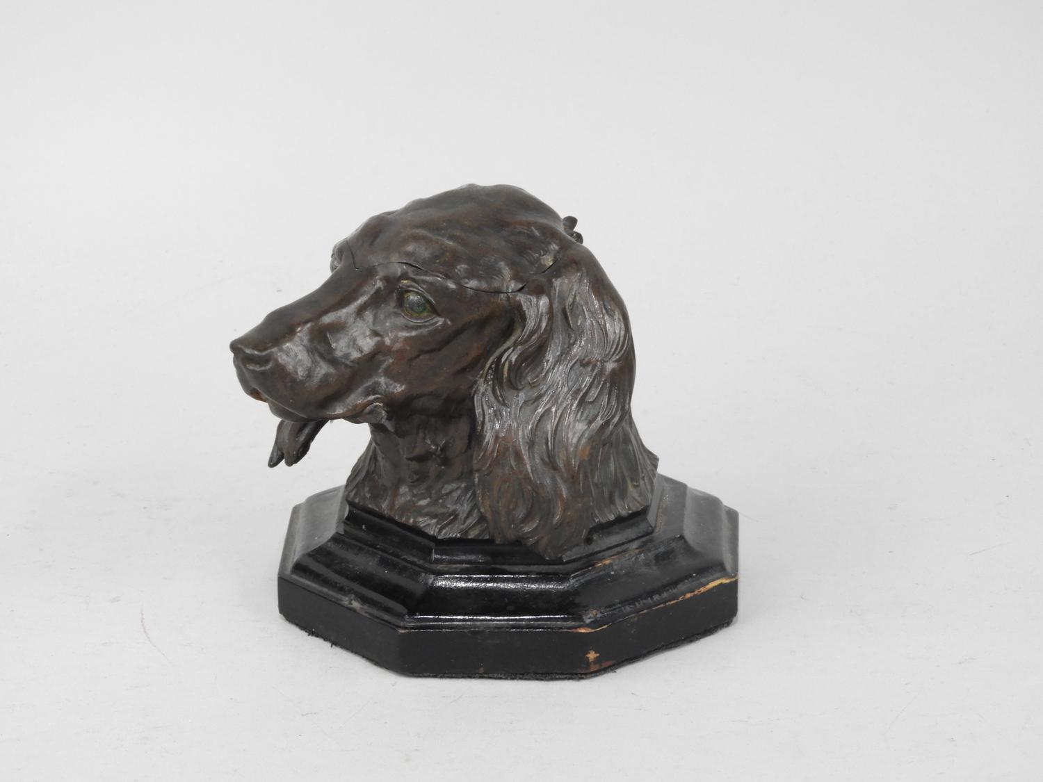 bronze patinated dog head inkwell