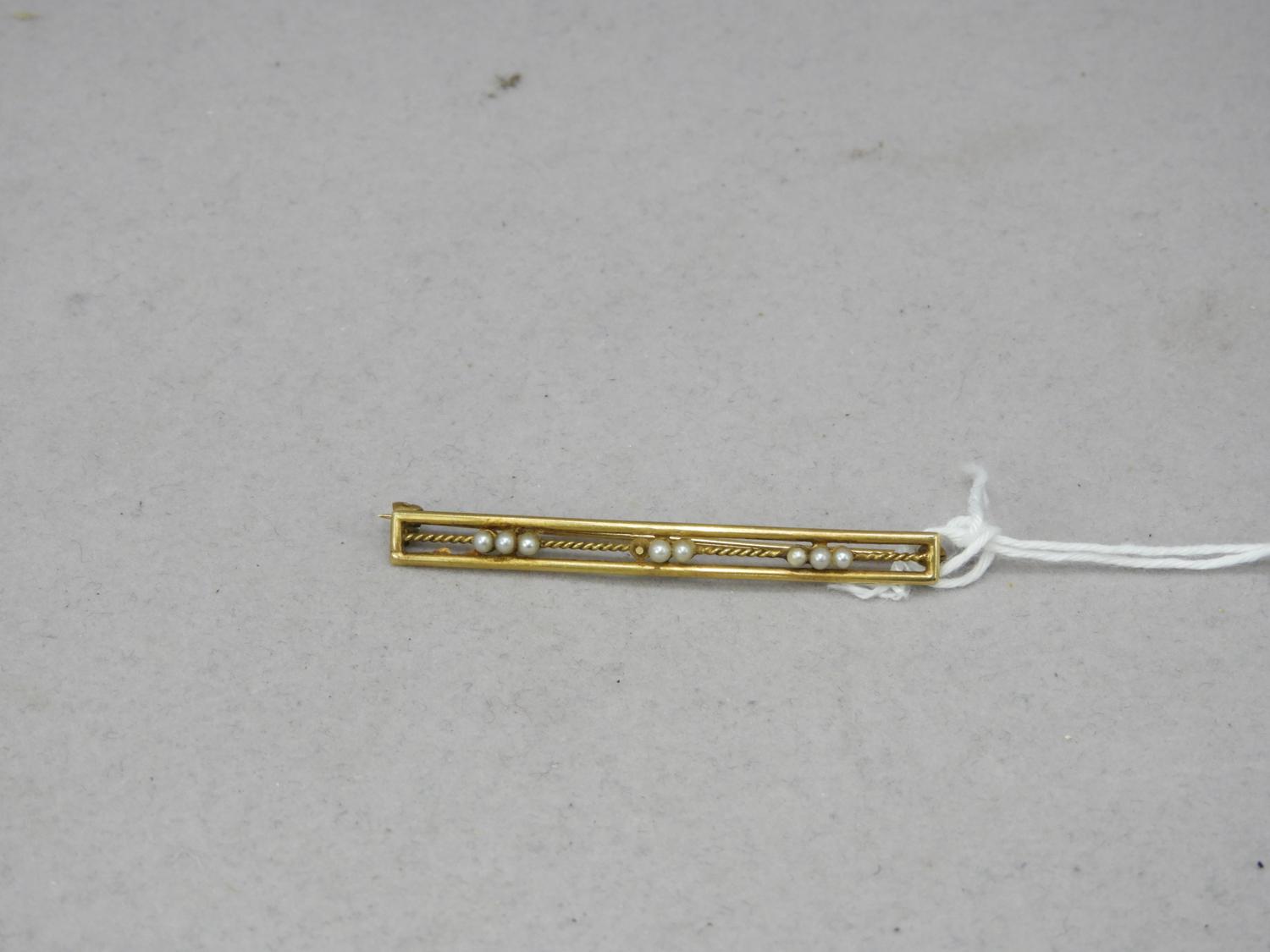 14k seed pearl bar brooch, circa 1900s