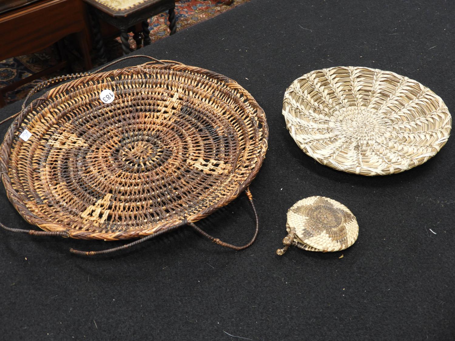 salish woven tray with other woven items
