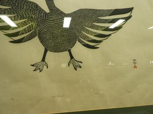 aggeo, cape dorset stonecut, 1/50, d. 1973. 23" x 33", "young goose"