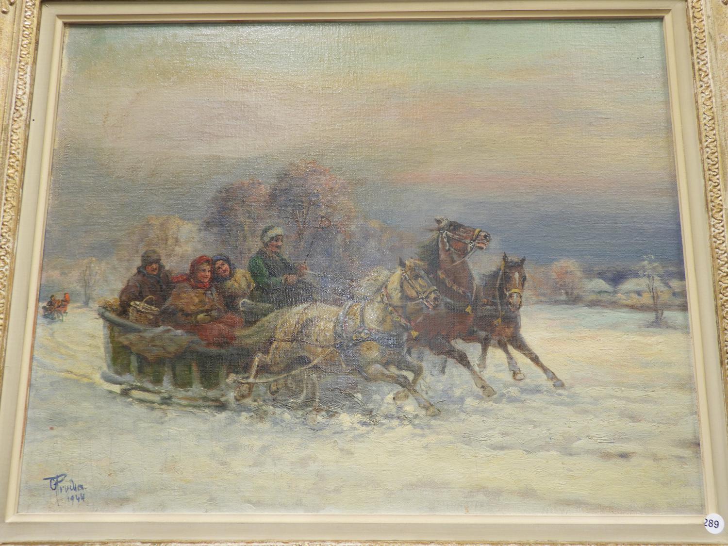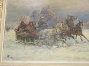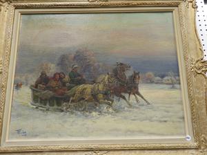 gustav prucha(1875-1952), 22" x 27", "horse drawn sleigh"