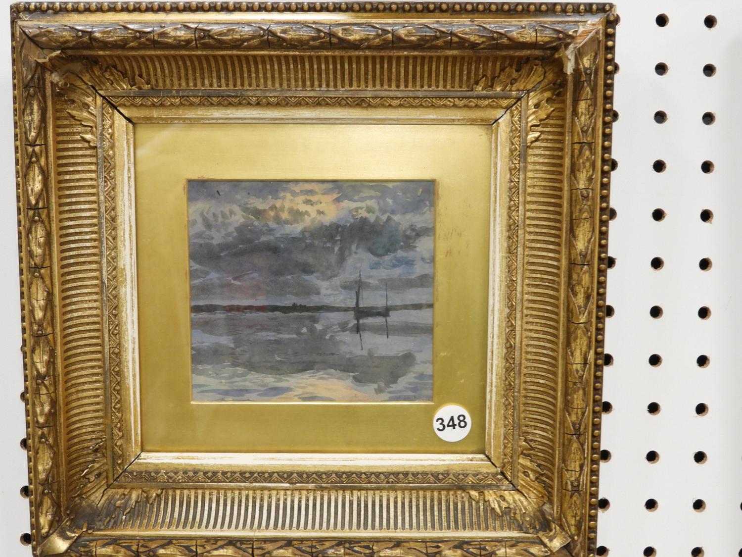 initials wrw, d.1878, watercolour, 4 1/2" x 4 1/2", "nautical scene".