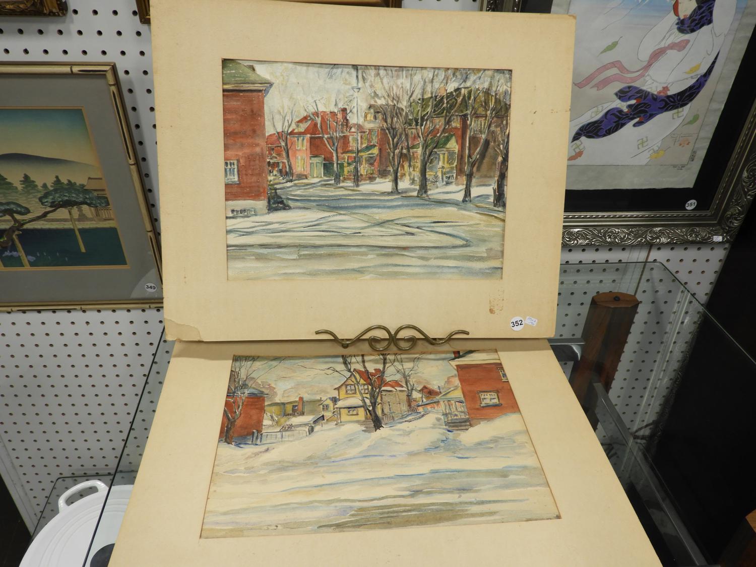 pair of unframed j. a. macfarland, watercolours, "street scenes".