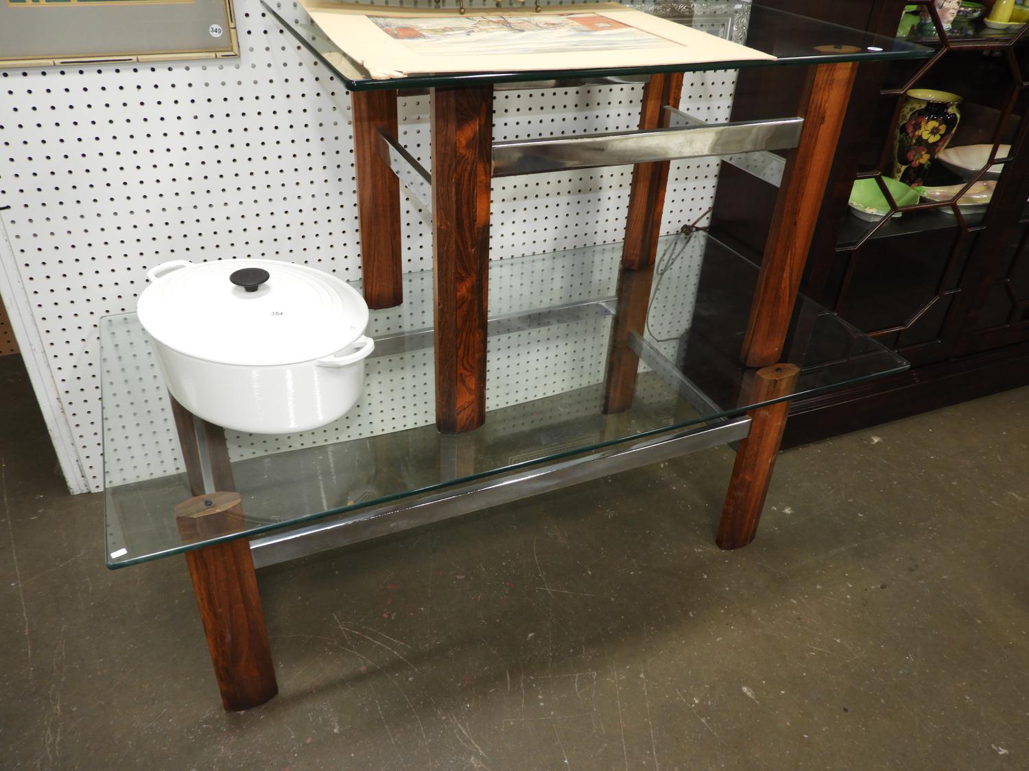 two glass top rosewood base tables.