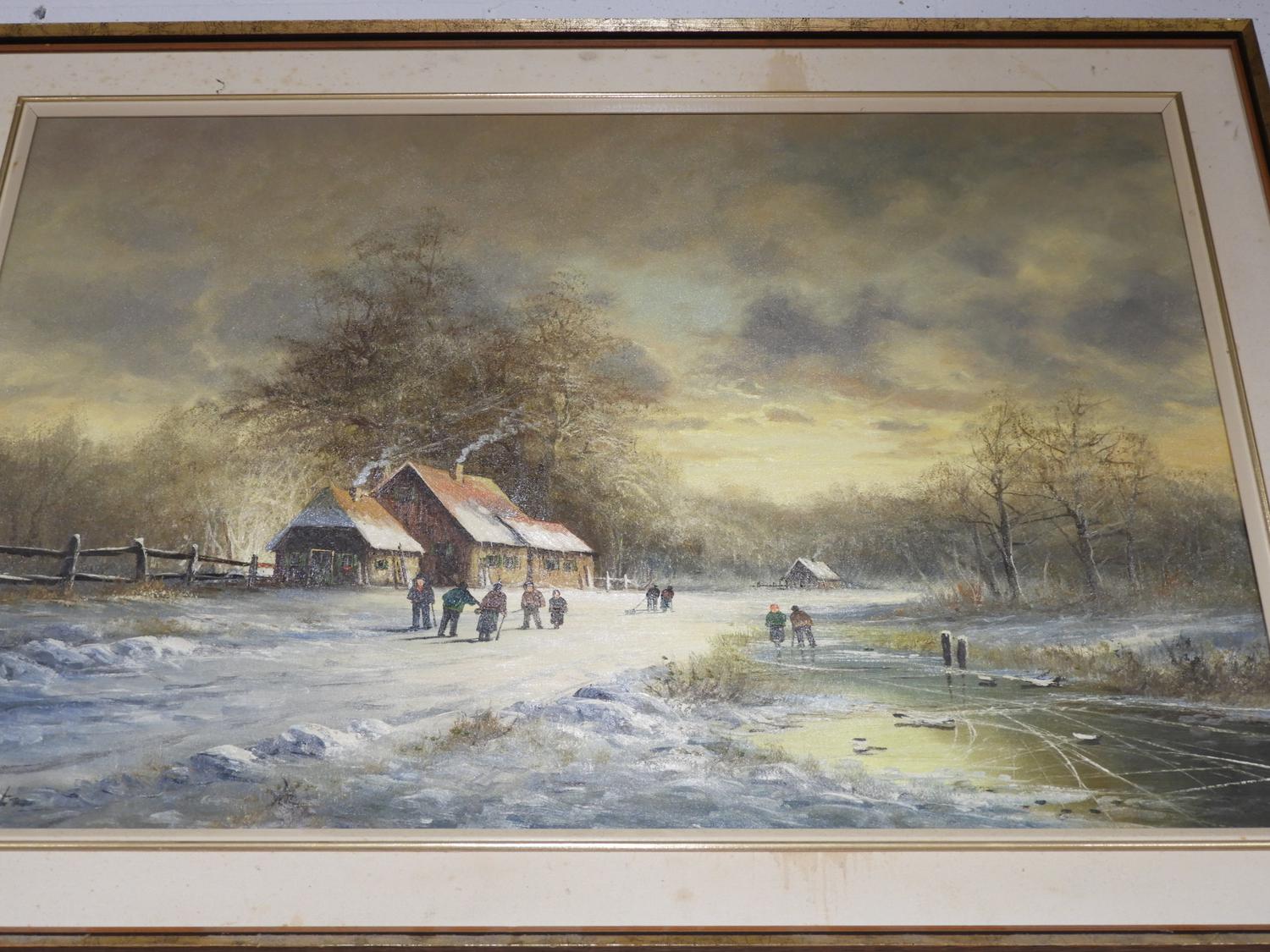 gunter seekatz, oil on canvas, 24" x 36", "winter scene with skaters".