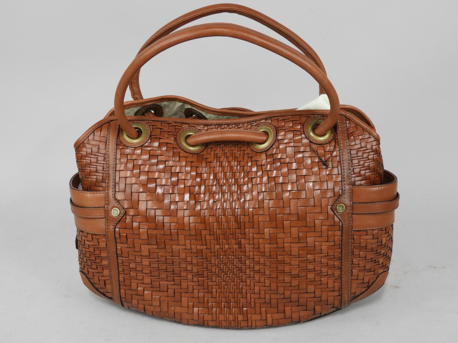 cole haan leather woven daybag