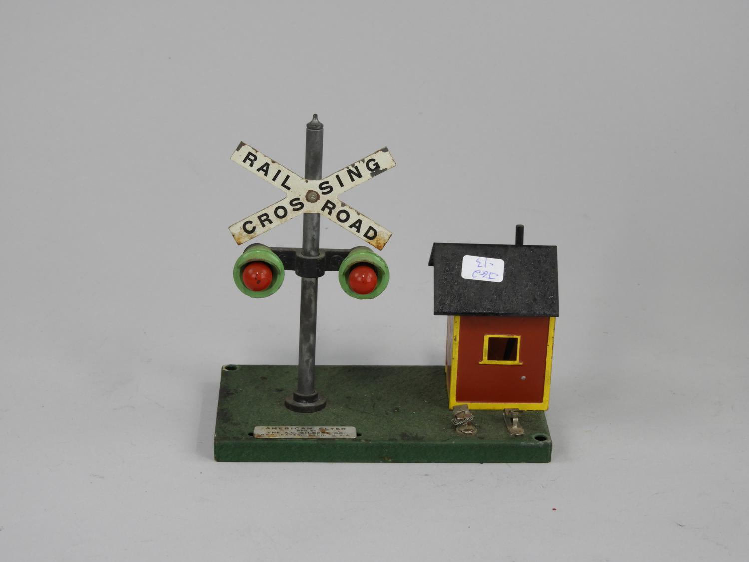 american flyer "rail road crossing" sign mfd. by the a.c. gilbert co.